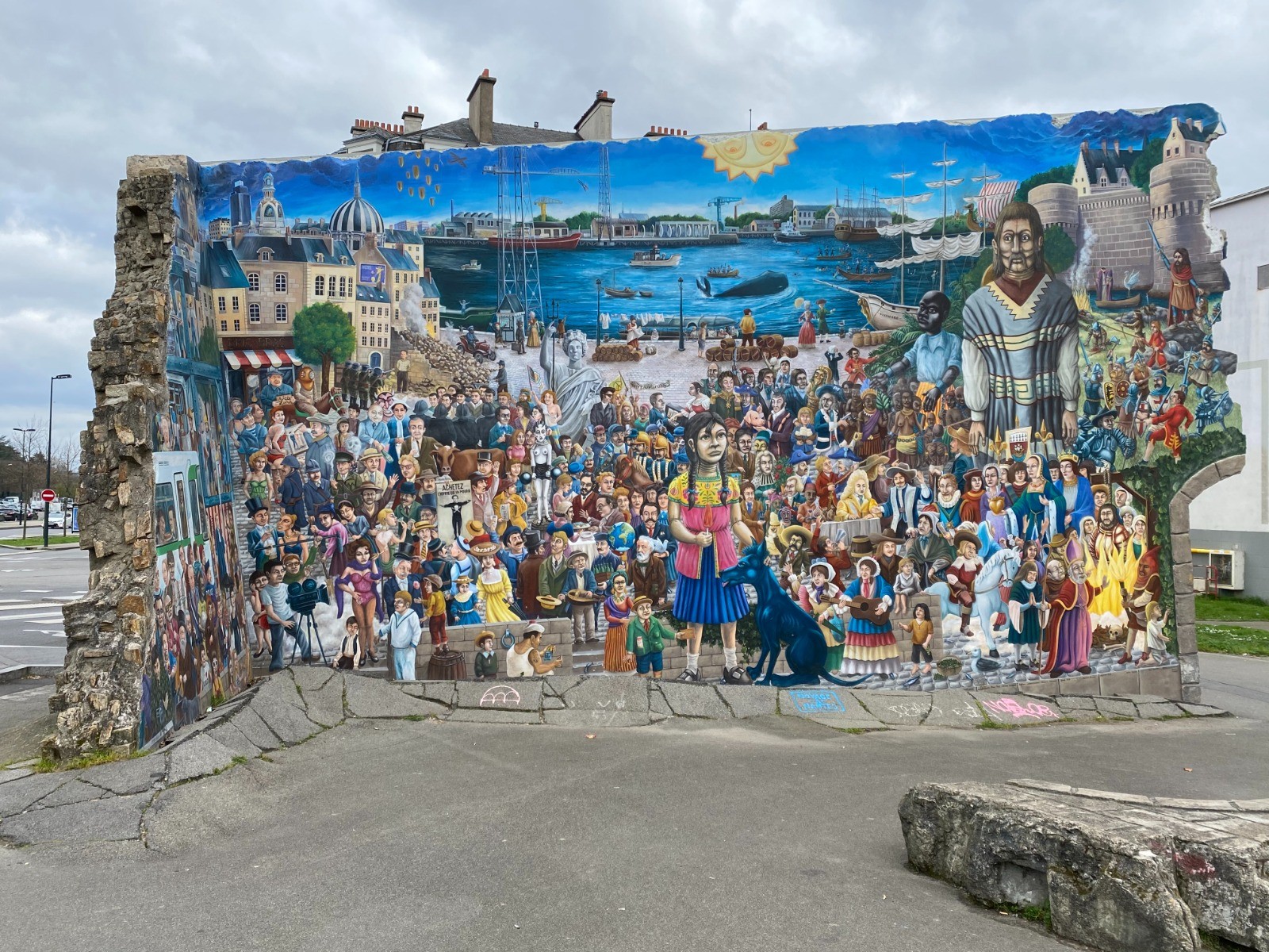 Près du CHU sied la célèbre fresque de Royal de luxe, réalisée par David Bartex, elle raconte l'histoire de Nantes à travers ses monuments et 200 personnages.