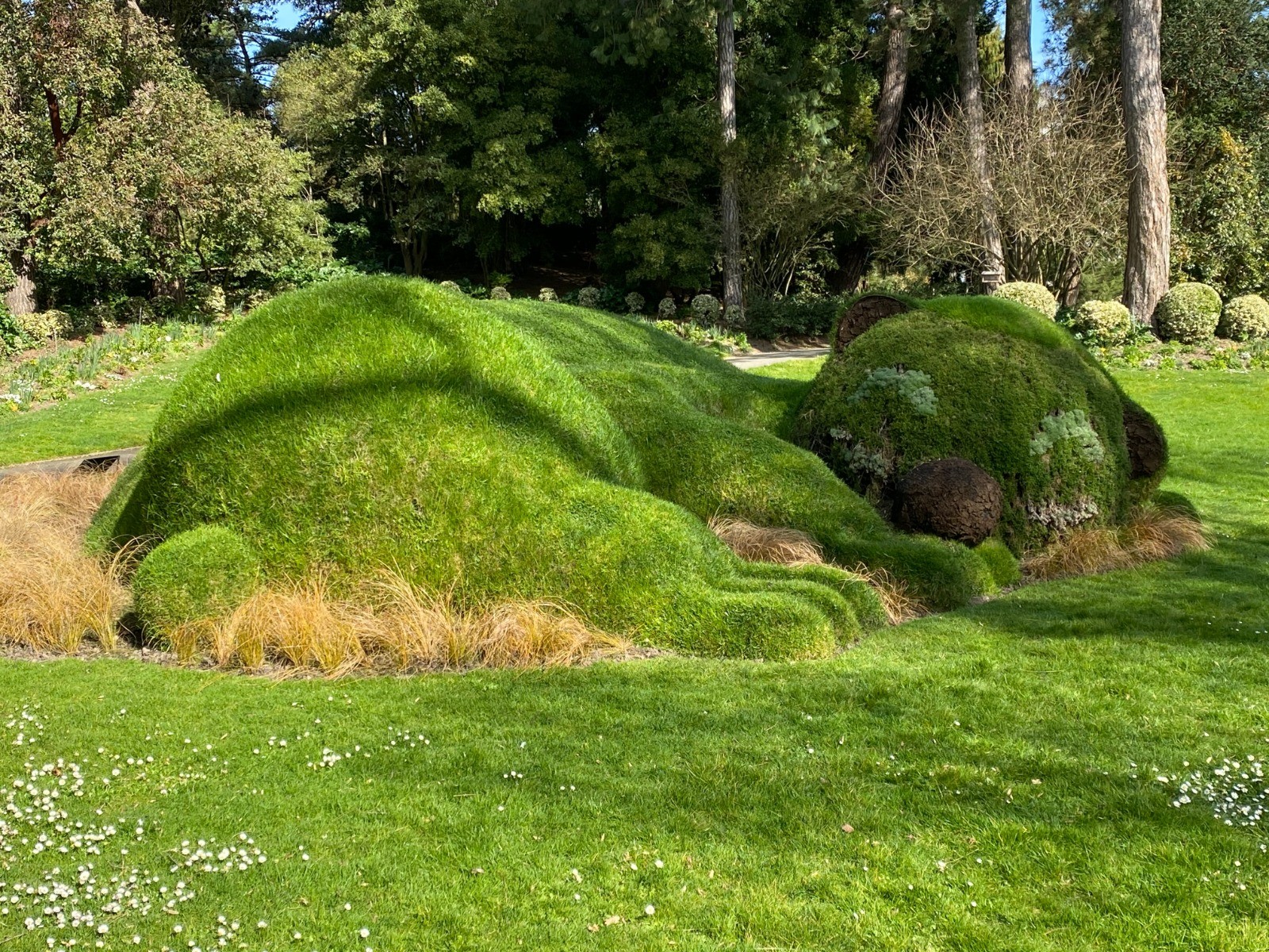 La visite du jardin est aussi l'occasion de découvrir un riche patrimoine artistique : une sculpture cerf-biche-faon, un banc géant, des créations végétales... de Claude Ponti, illustrateur et auteur de littérature jeunesse. à Nantes