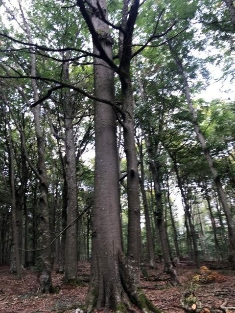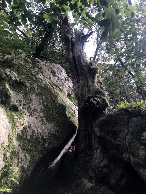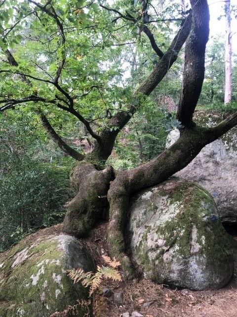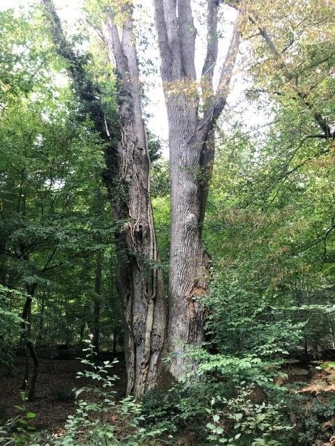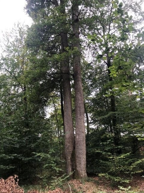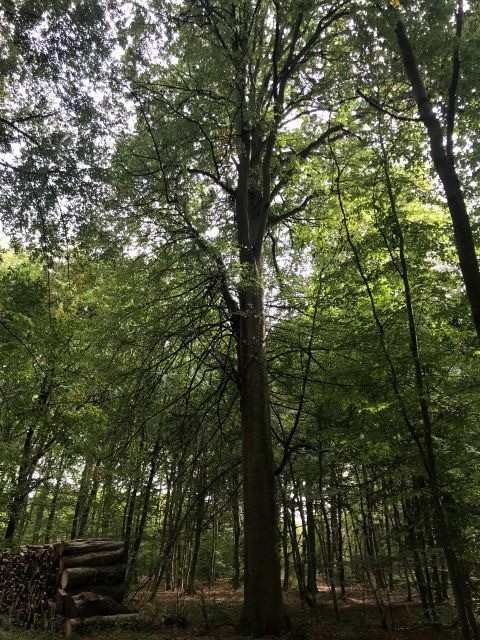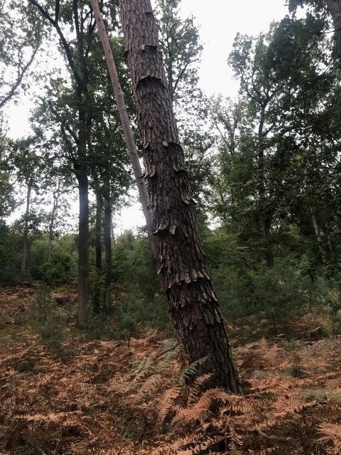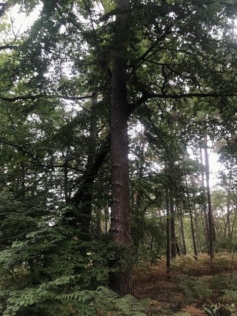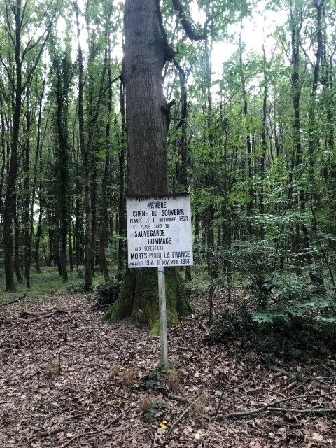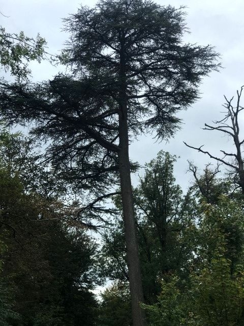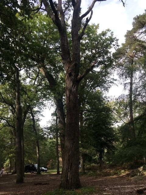 Au départ du parking au carrefour des huit routes, balade des arbres remarquables : des chênes, des pin noir, du hêtre, des merisiern un chene rouge d'Amerique, un cedre de l'Atlas et des pins à singhle.
