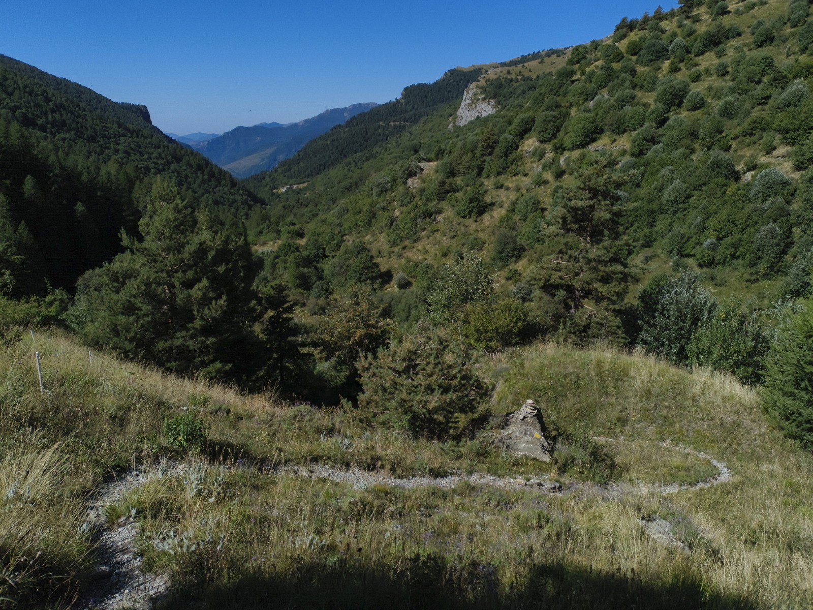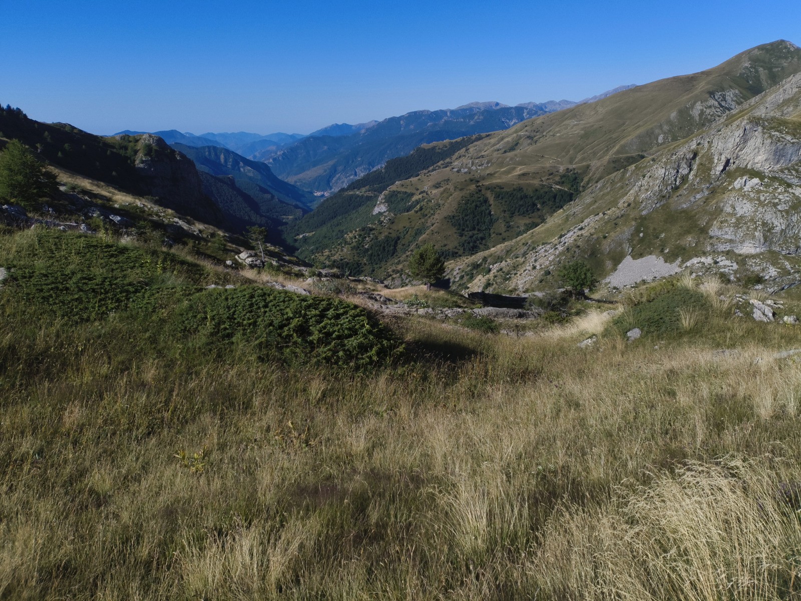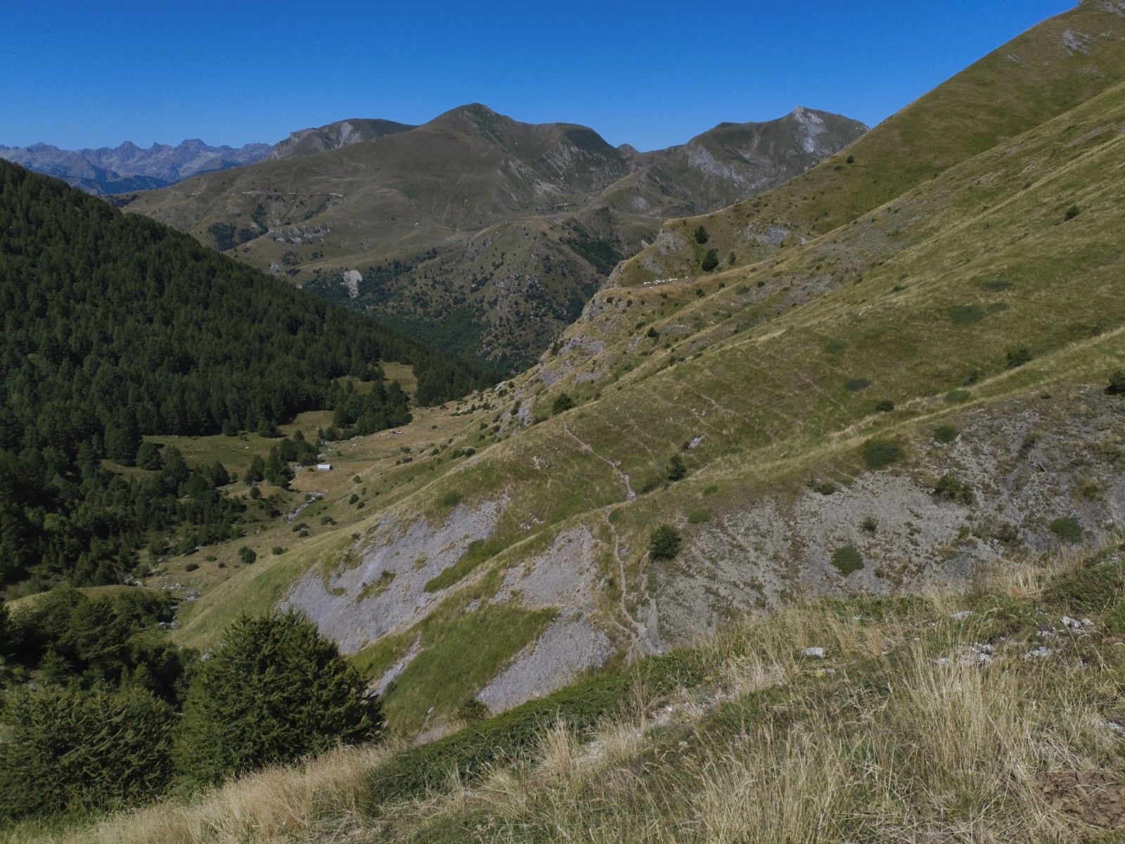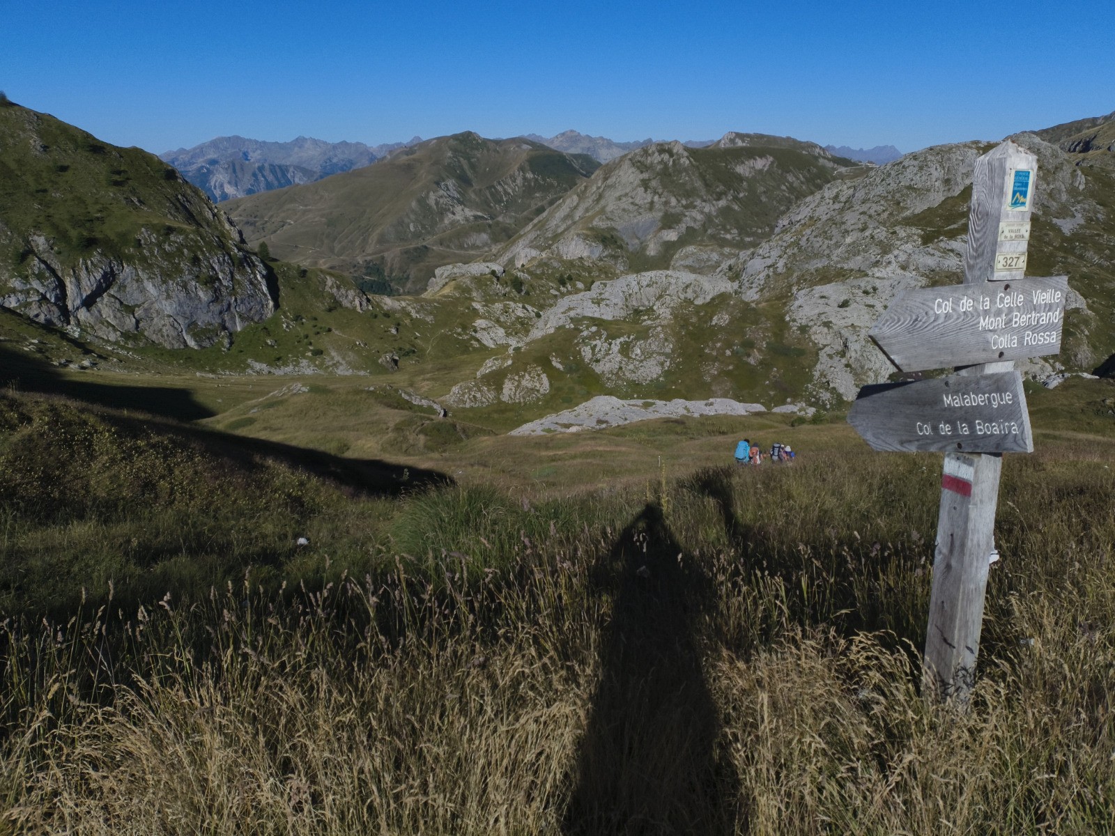 Rifugio Don Barbera (2070 m) - Colle del lago dei Signori (2111 m -> France) - Vacherie de Malabergue - (carrefour de sentiers à 1596 m) - Bergerie de Sénéca - Col de la Celle Vielle (2099 m) - Col de l'Évèque (2162 m) -> Italie - Cima di Velega (2384 m) - Monte Bertrand (2482 m) - Colla Rossa (2178 m) - Poggio Lagone - Piano Formigola - Locanda d'Upega (1290 m)
