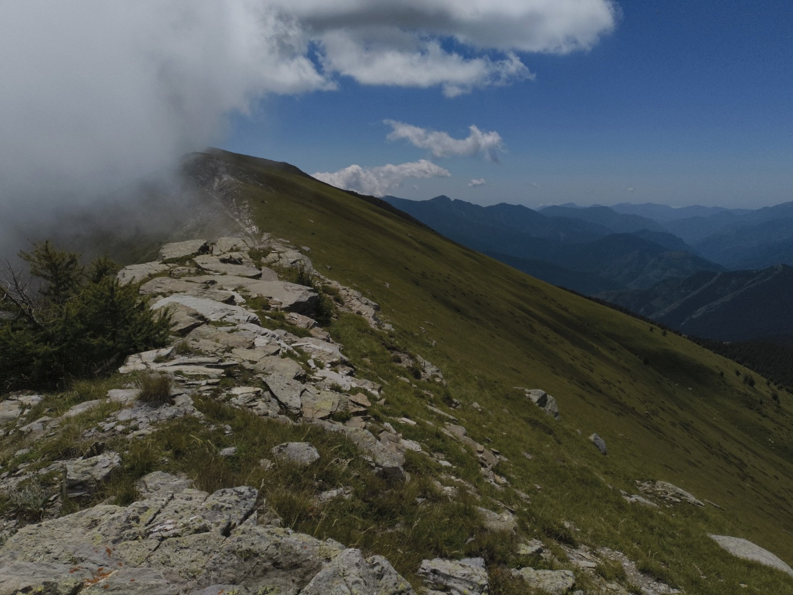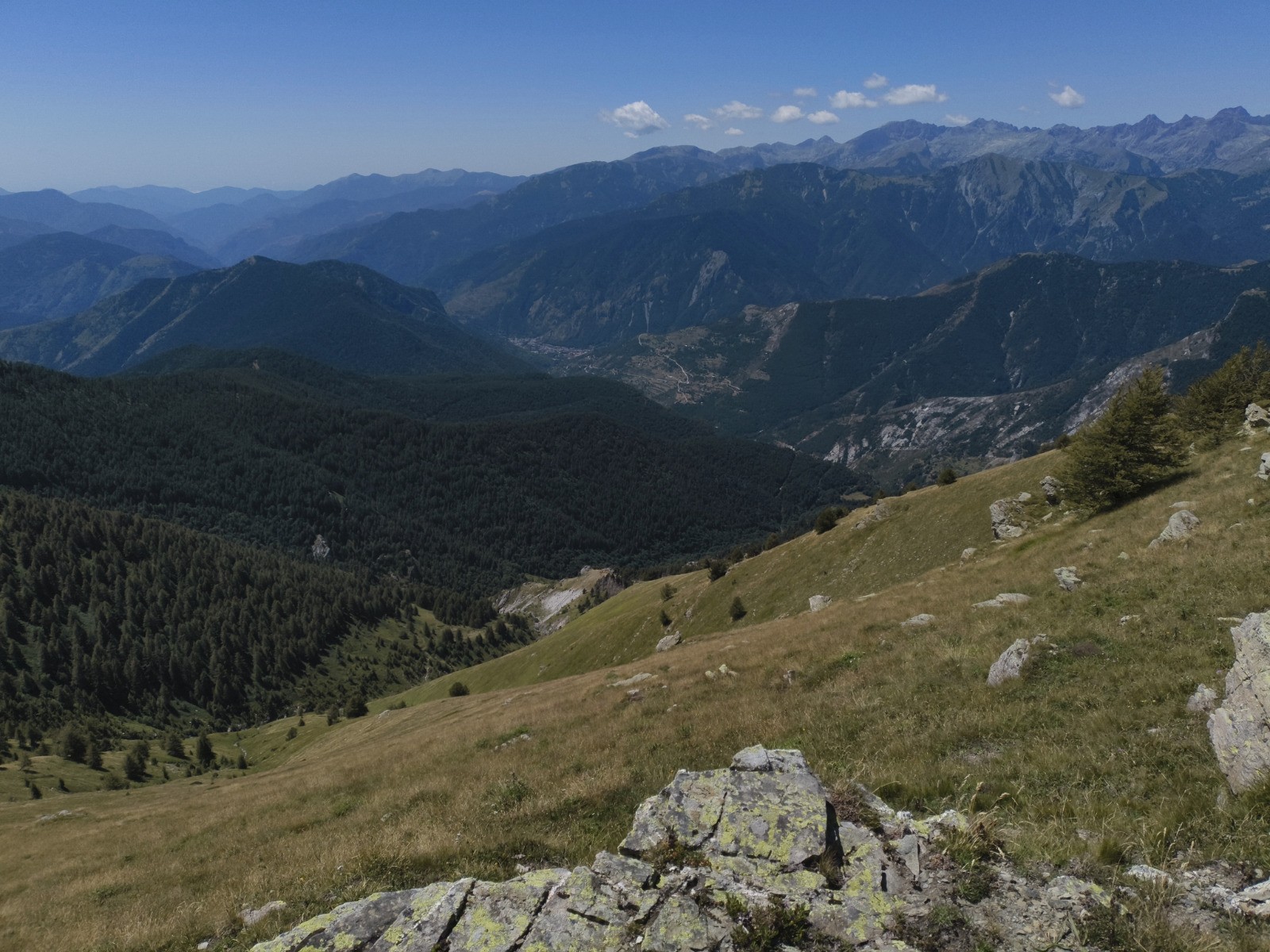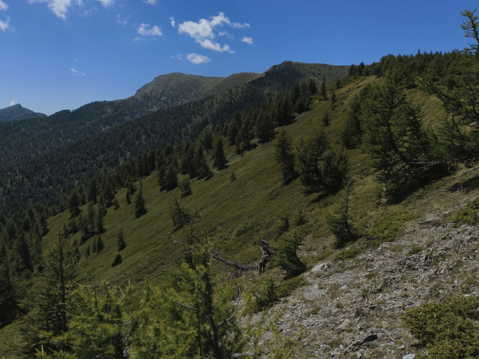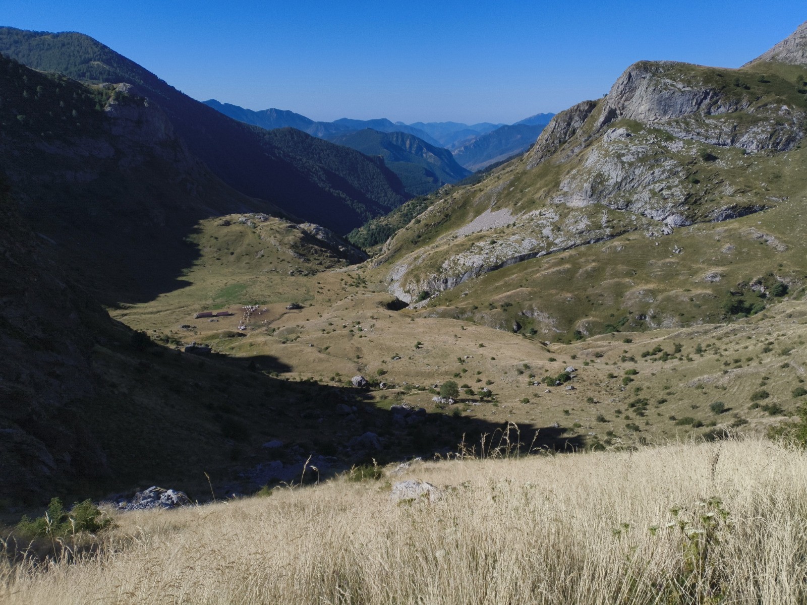 Rifugio Don Barbera (2070 m) - Colle del lago dei Signori (2111 m -> France) - Vacherie de Malabergue - (carrefour de sentiers à 1596 m) - Bergerie de Sénéca - Col de la Celle Vielle (2099 m) - Col de l'Évèque (2162 m) -> Italie - Cima di Velega (2384 m) - Monte Bertrand (2482 m) - Colla Rossa (2178 m) - Poggio Lagone - Piano Formigola - Locanda d'Upega (1290 m)