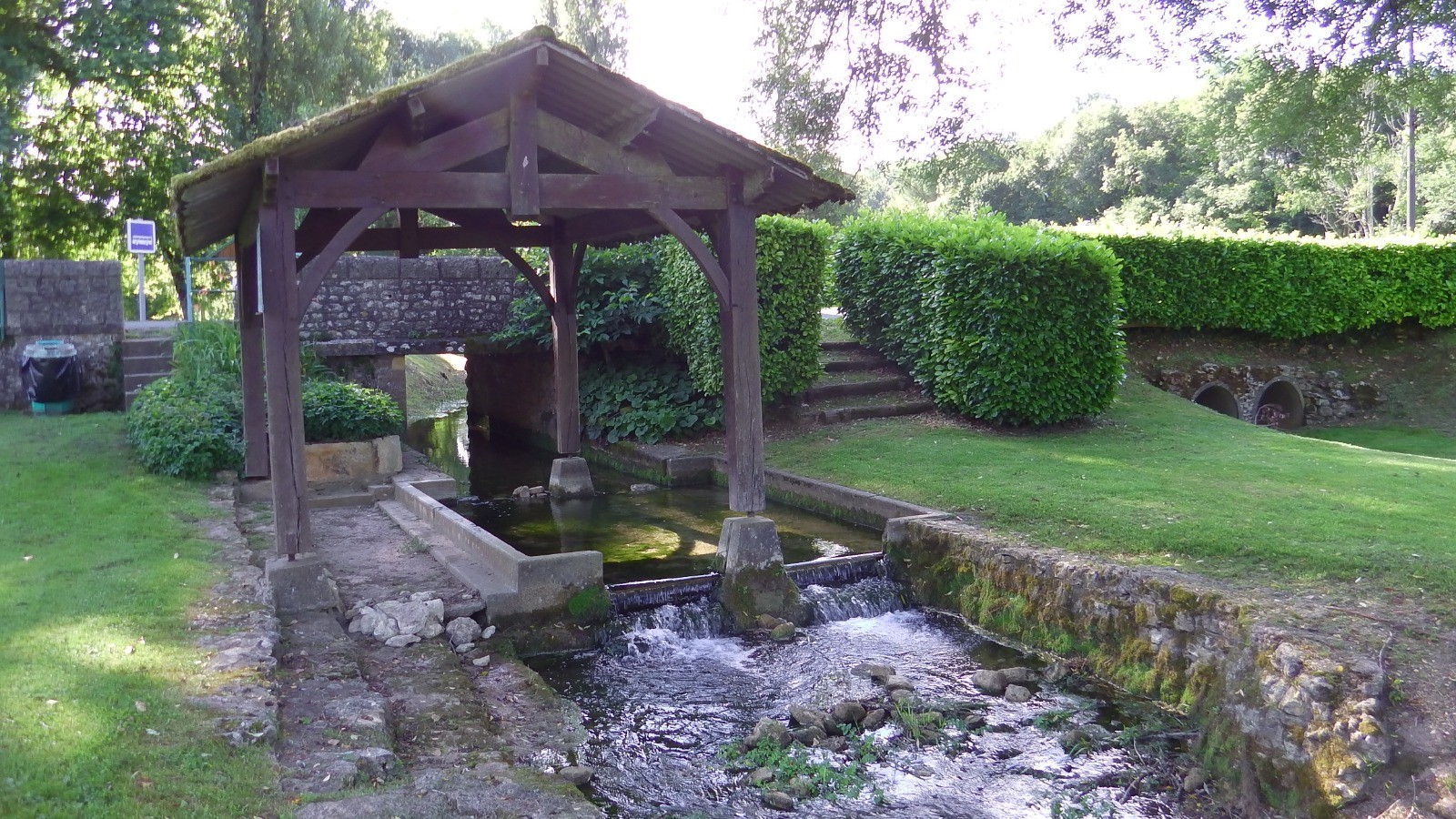 Départ: parking en herbe au bas du village (lavoir, pont en bois, tables et portique de jeux)
