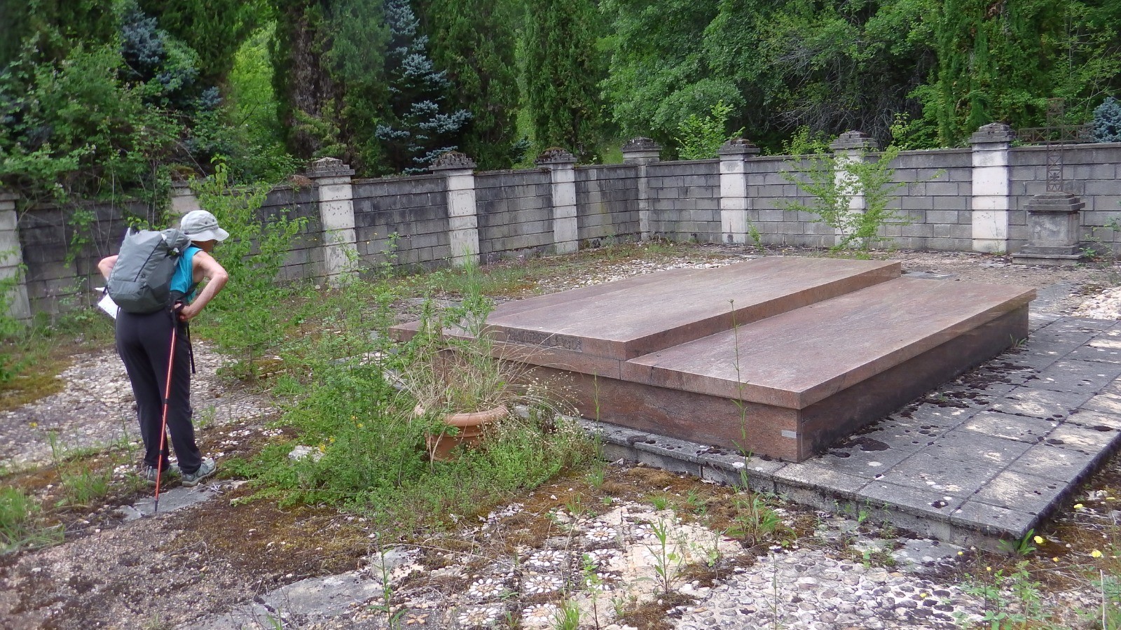Au retour une tombe particulière, entourée d'un grand mur, intrigue.