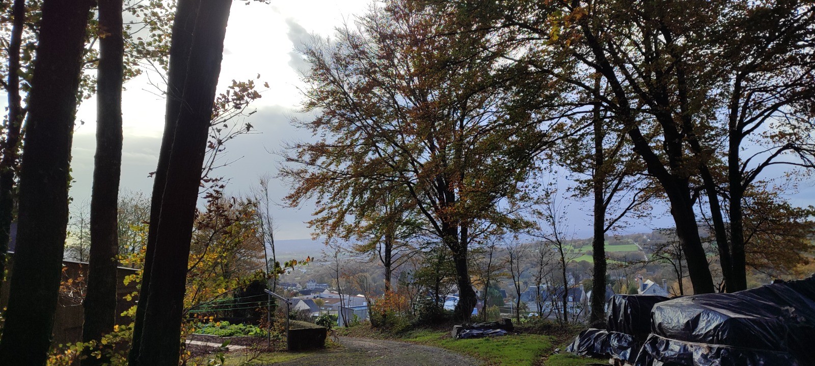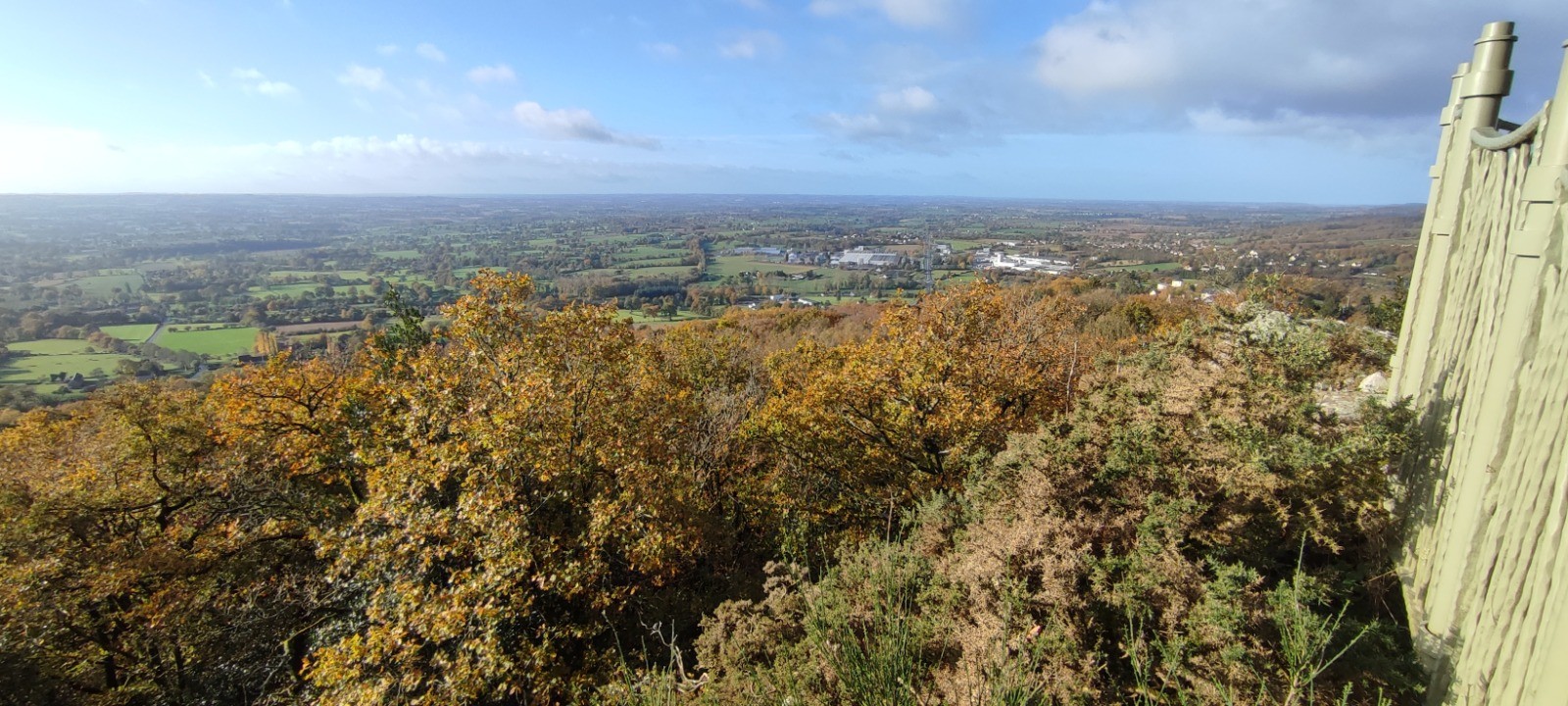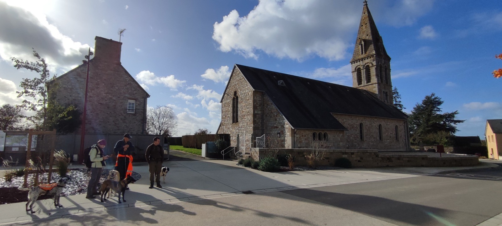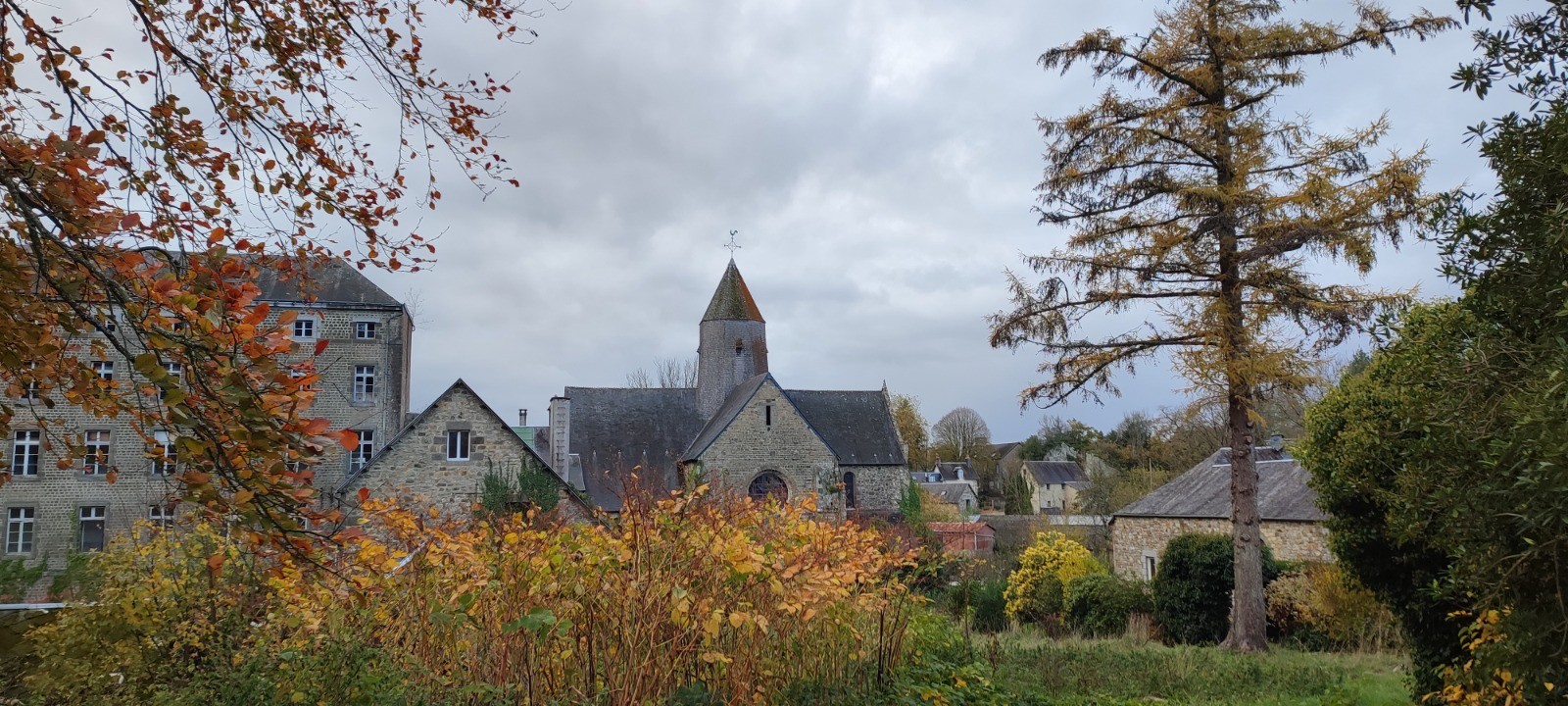 Météo : assez clémente dans l'ensemble mais 2 moments de pluie ... Le premier, juste après le pique-nique, avec vent (froid) et sur un sommet, le second, juste en sortant de l'Abbaye, dans Mortain, protégés du vent et - de mémoire - plus court !