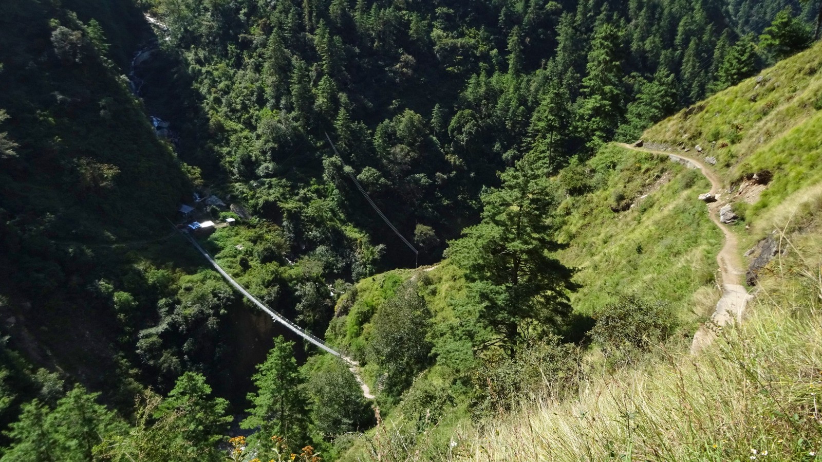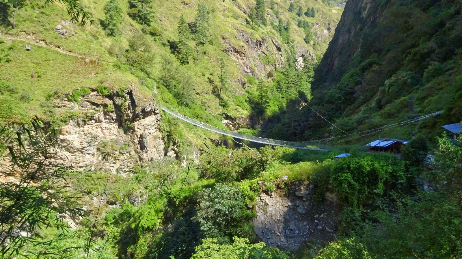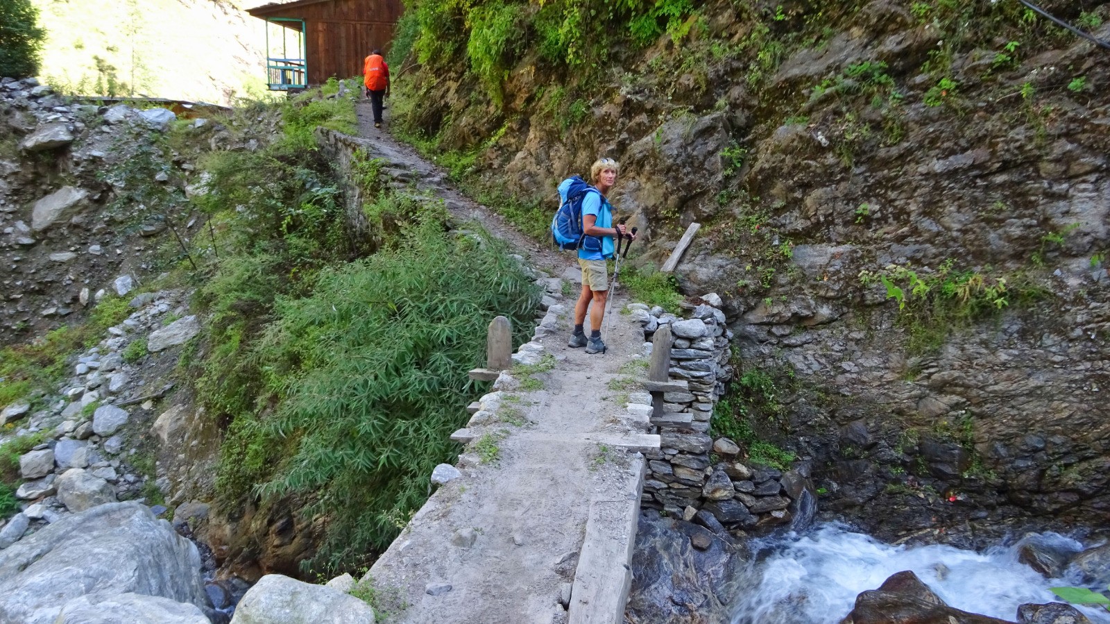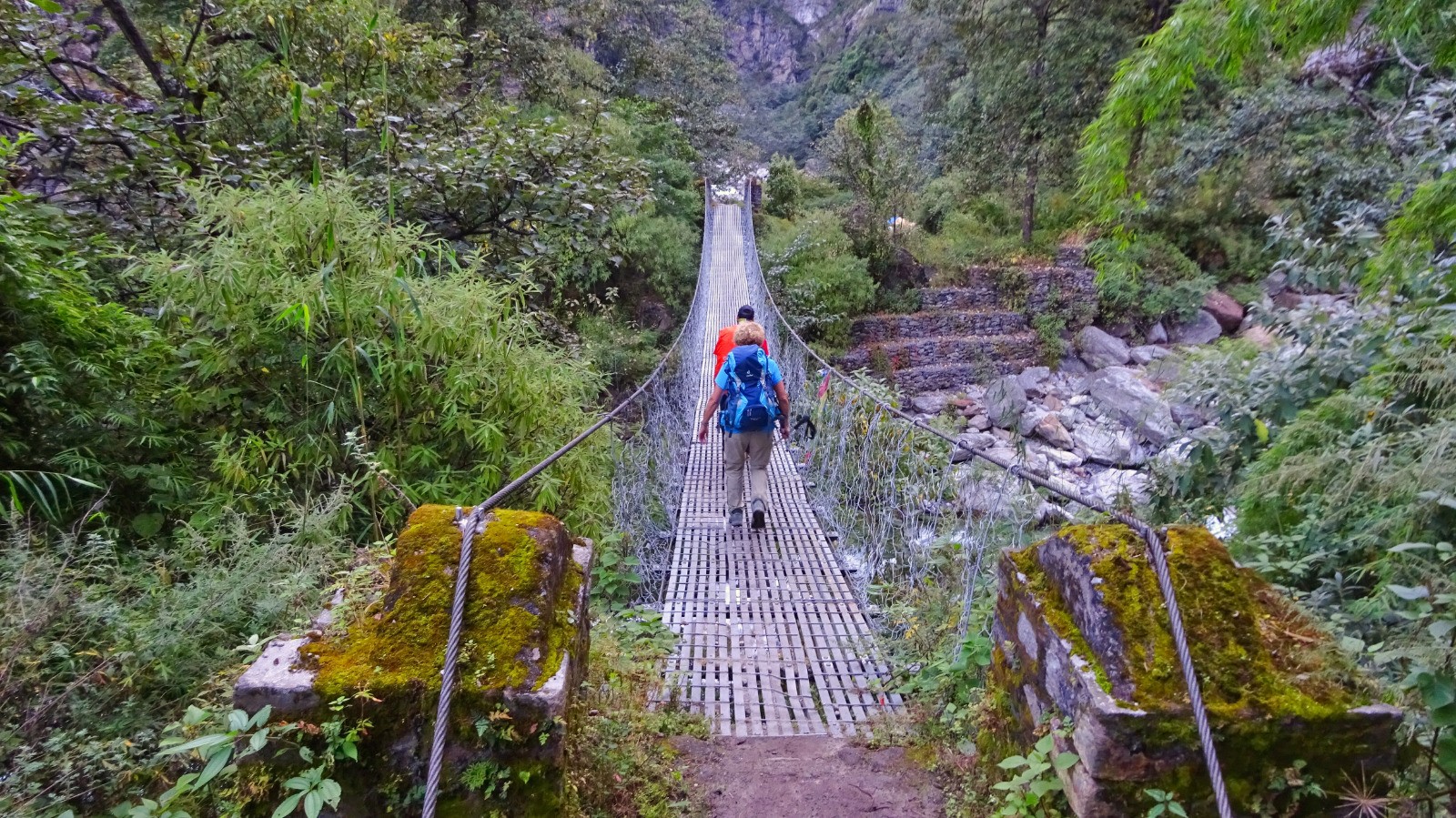 Au dernier pont népalais un dernière montée bien raide nous attend, puis un peu de vallonné sur un beau chemin pour rejoindre la guesthouse.