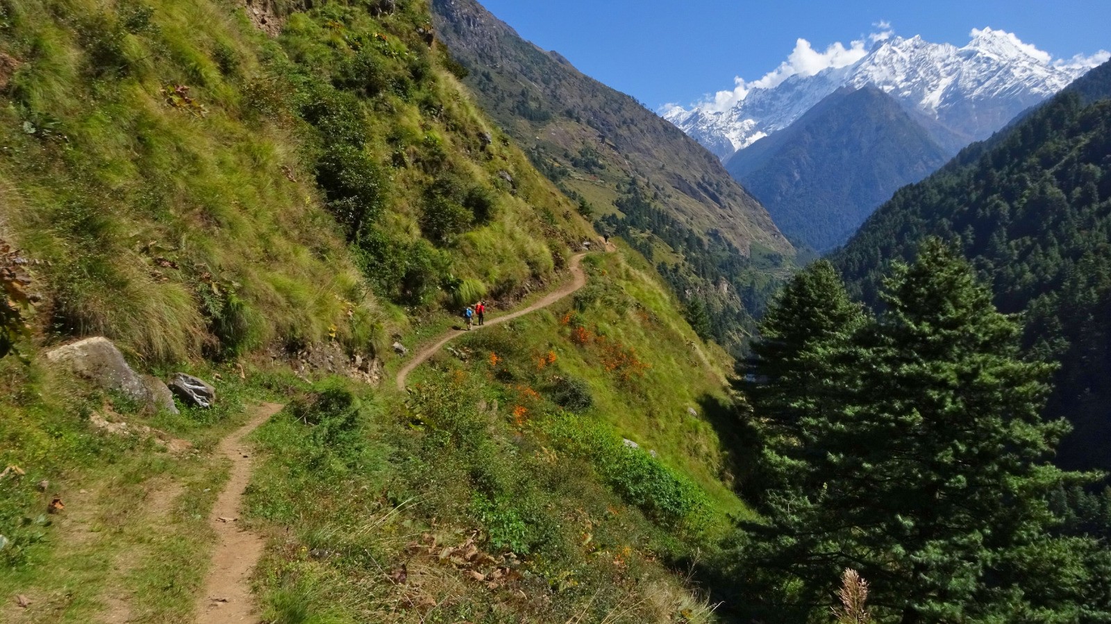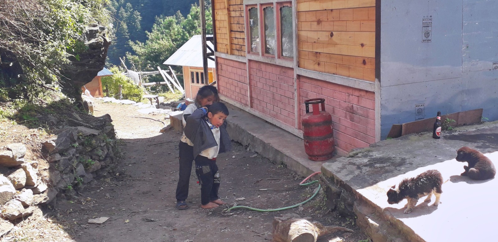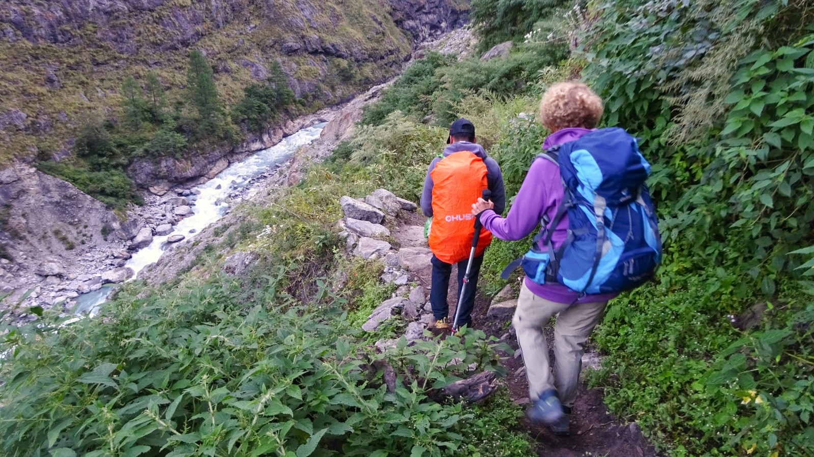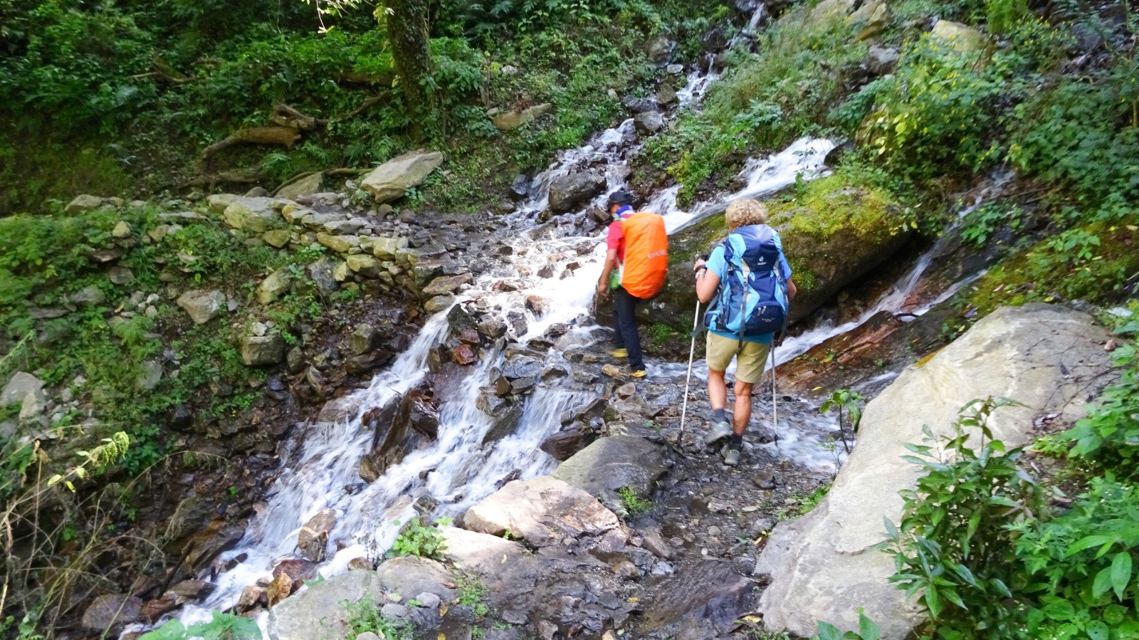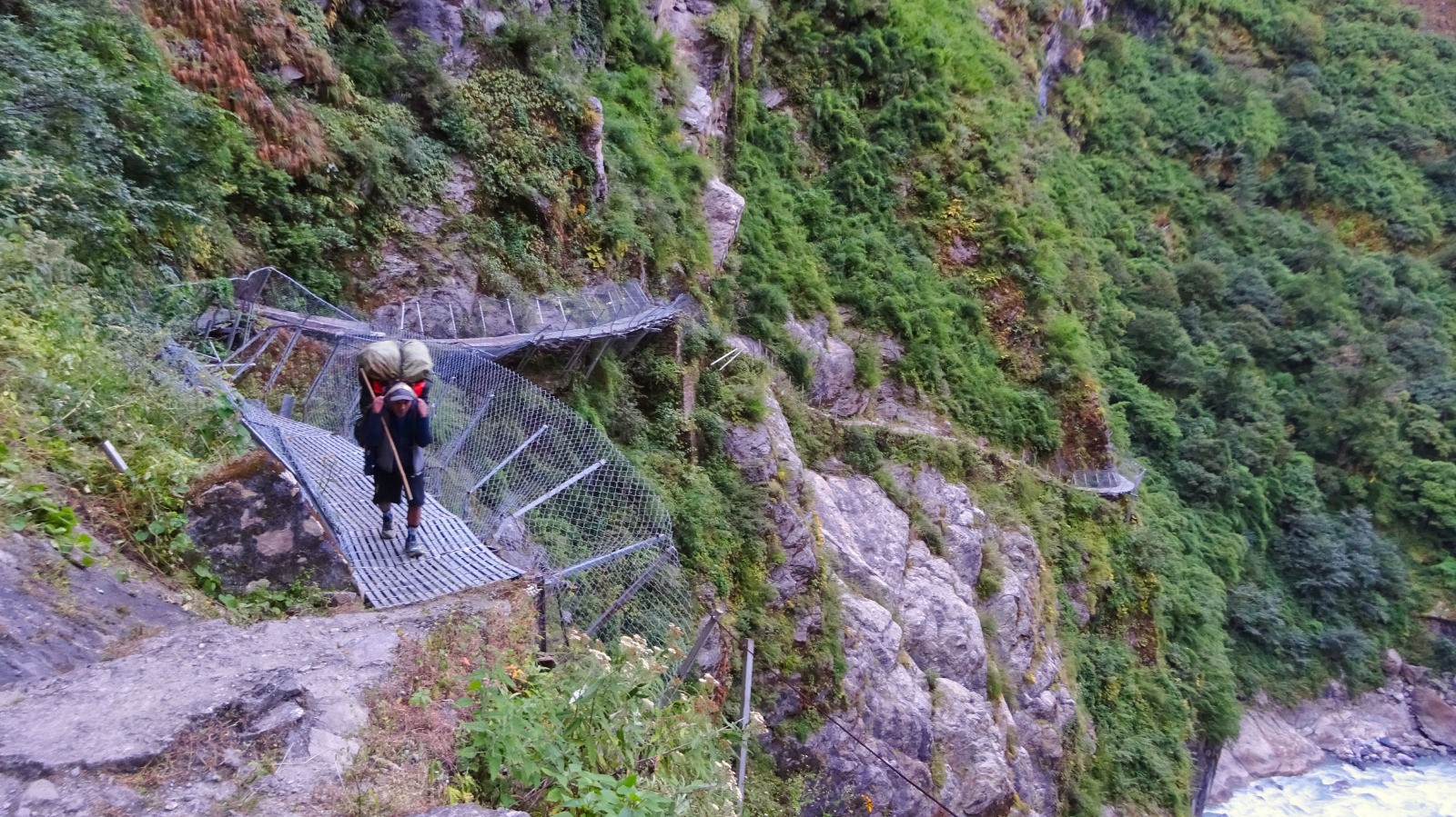 Au dernier pont népalais un dernière montée bien raide nous attend, puis un peu de vallonné sur un beau chemin pour rejoindre la guesthouse.