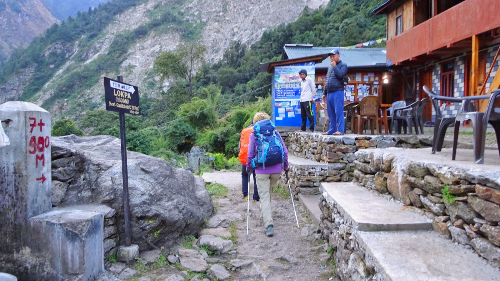 Nuit et repas à : Tsum Jhambala Hotel & Restaurant, électricité avec le groupe électrogène de 06h00 à 10h00, wifi normalement gratuite mais en panne lors de notre passage.