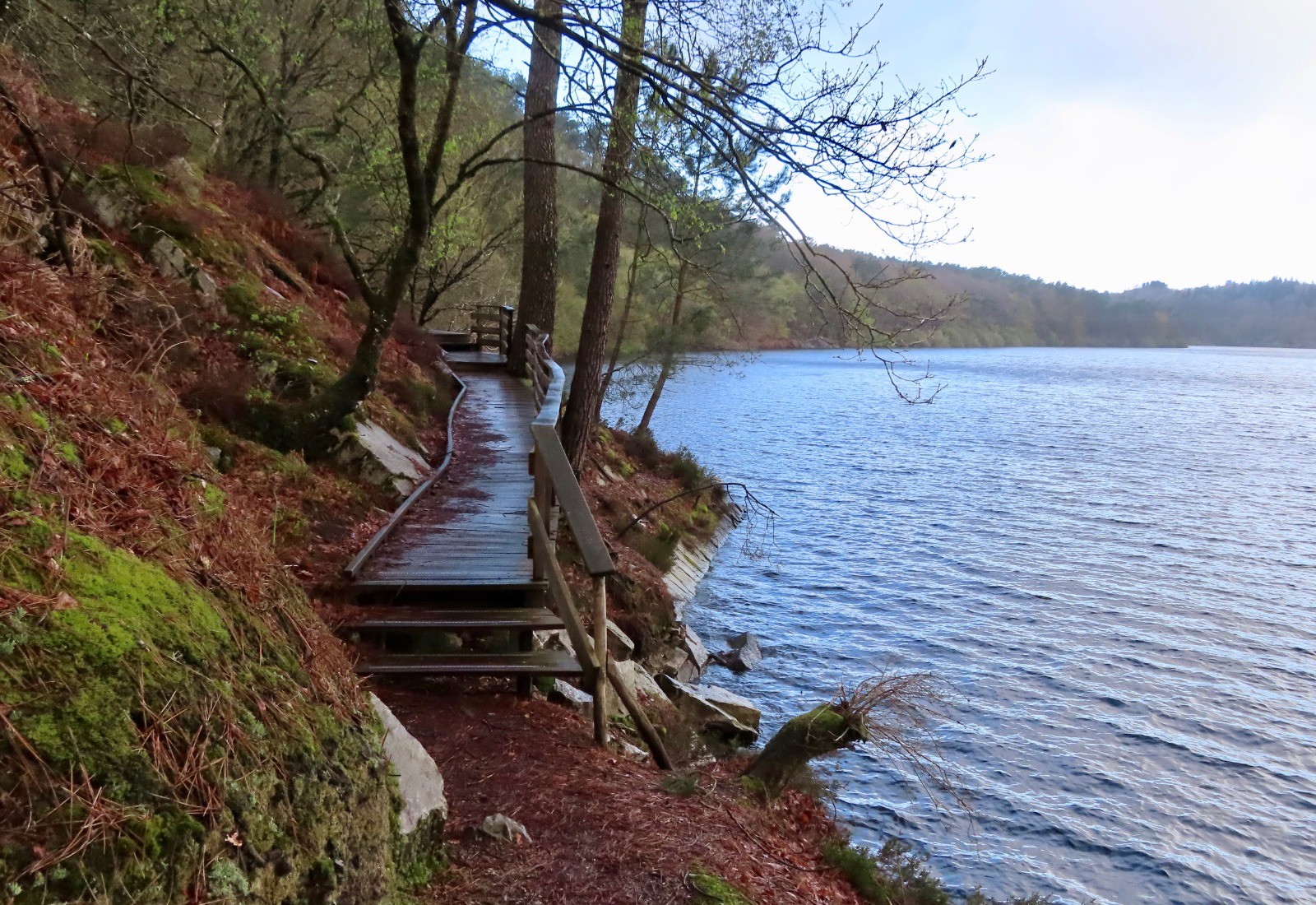 De la rive sud du lac de Guerlédan, vous découvrirez des vues panoramiques exceptionnelles sur cette vallée engloutie par les eaux. La construction du barrage en 1930 a immergé 17 écluses du canal de Nantes à Brest. Ce topo propose une boucle de randonnée vers le barrage et la rive sud du lac.