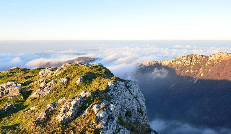 Une fois atteint son sommet, j'attends patiemment le lever du soleil. Mais en l'absence de nuages en altitude et malgré un beau spectacle, je ne bénéficie pas de couleurs mirifiques et la mer de nuages attendue est moins spectaculaire que vendredi dernier du côté des 3 Becs.
