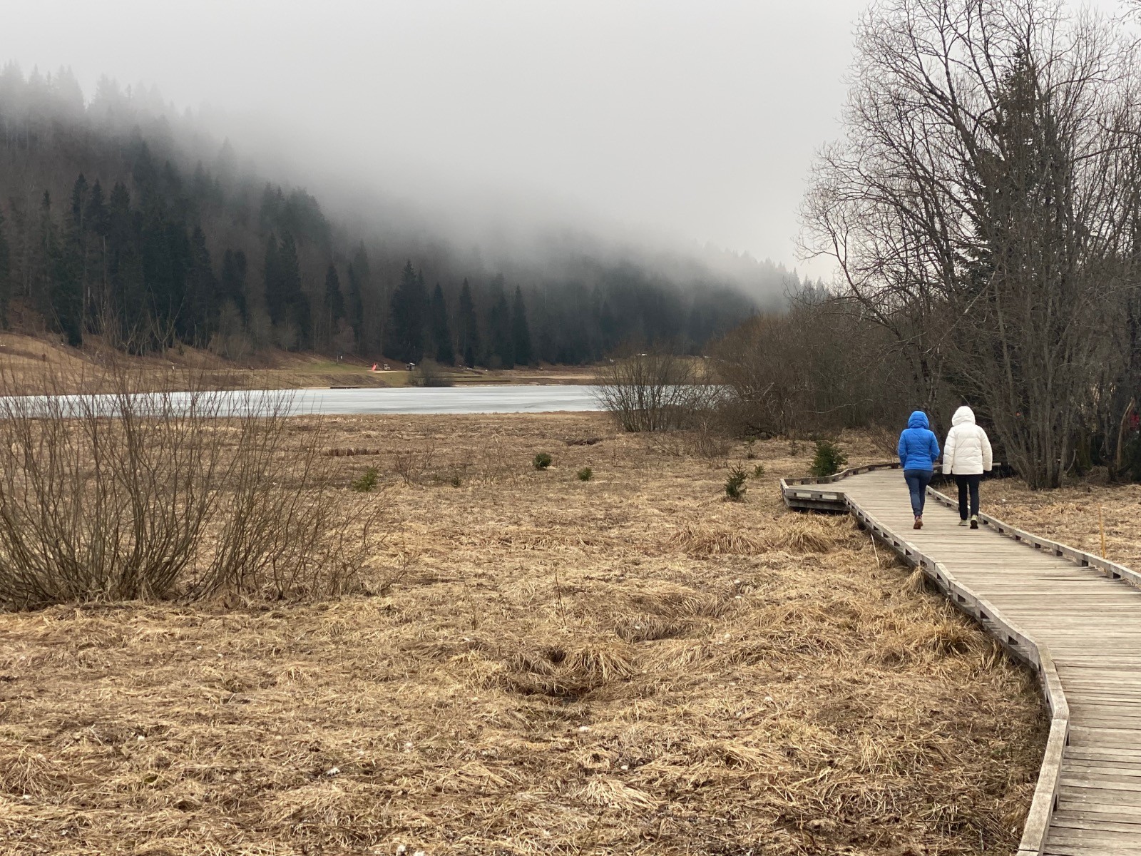 Ou tout simplement balade autour du lac de Lamoura, sur le sentier balisé piéton.