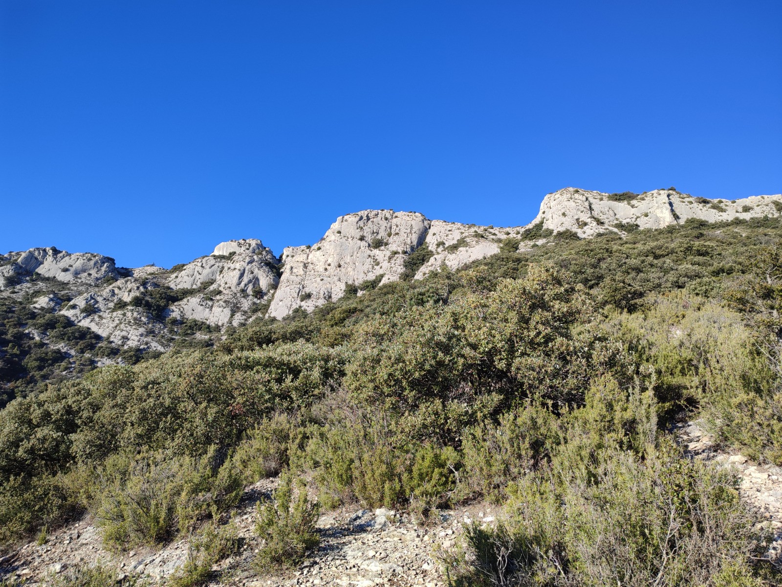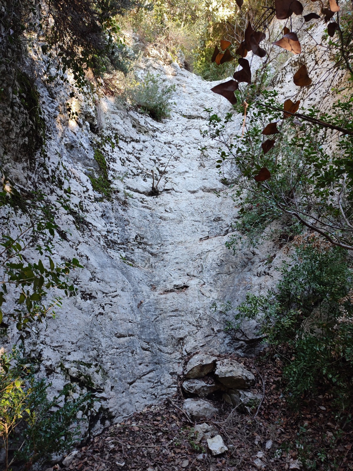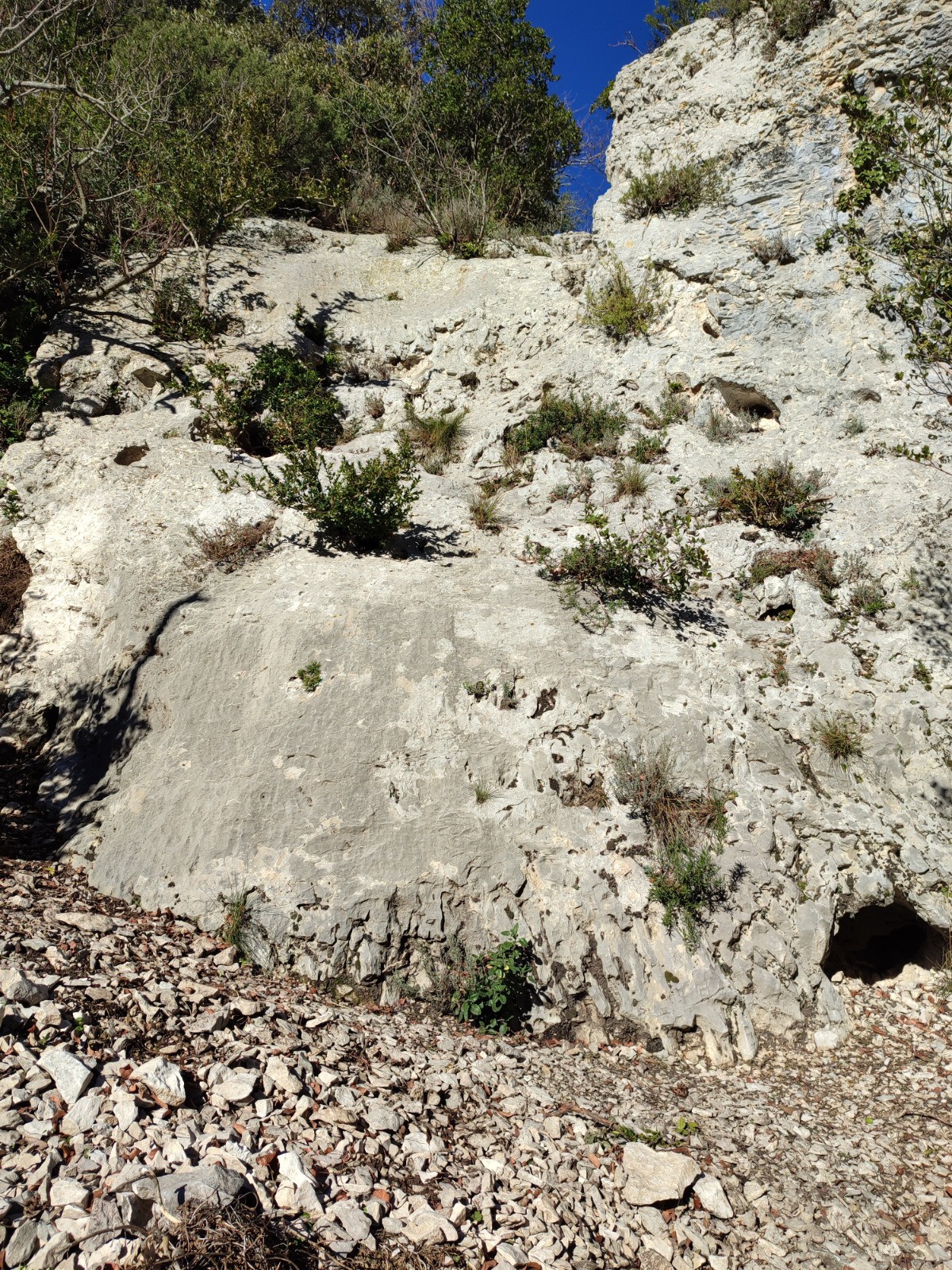 Pour la descente aux Rochers des Onze Heures, il faut suivre un marquage bleu, à ne pas rater pour les premiers mètres de descente dans la barre rocheuse. Le sentier ensuite se suit plus ou moins facilement en fonction de l'envahissement de la végétation. Et plus bas dans le Vallon du Tour Nègre, le sentier est facile à suivre.