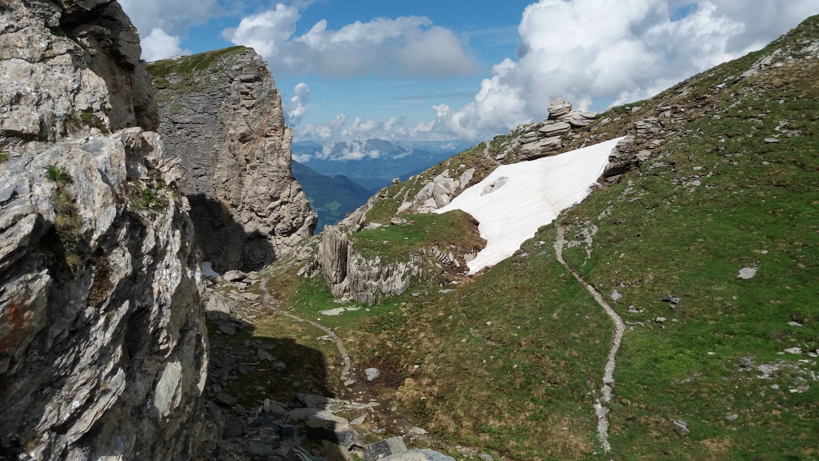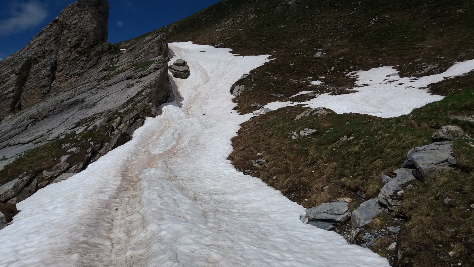 Rocher du vent et la crête avant Roches Merles. descente dans la prairie pas de sentier. Au niveau de Bel Air on a manqué le sentier, il doit être en dessous la cabane.