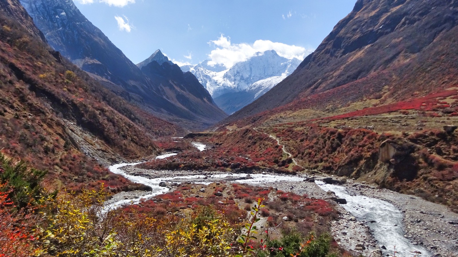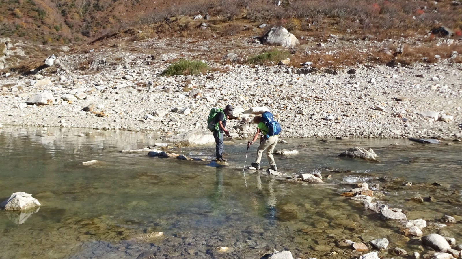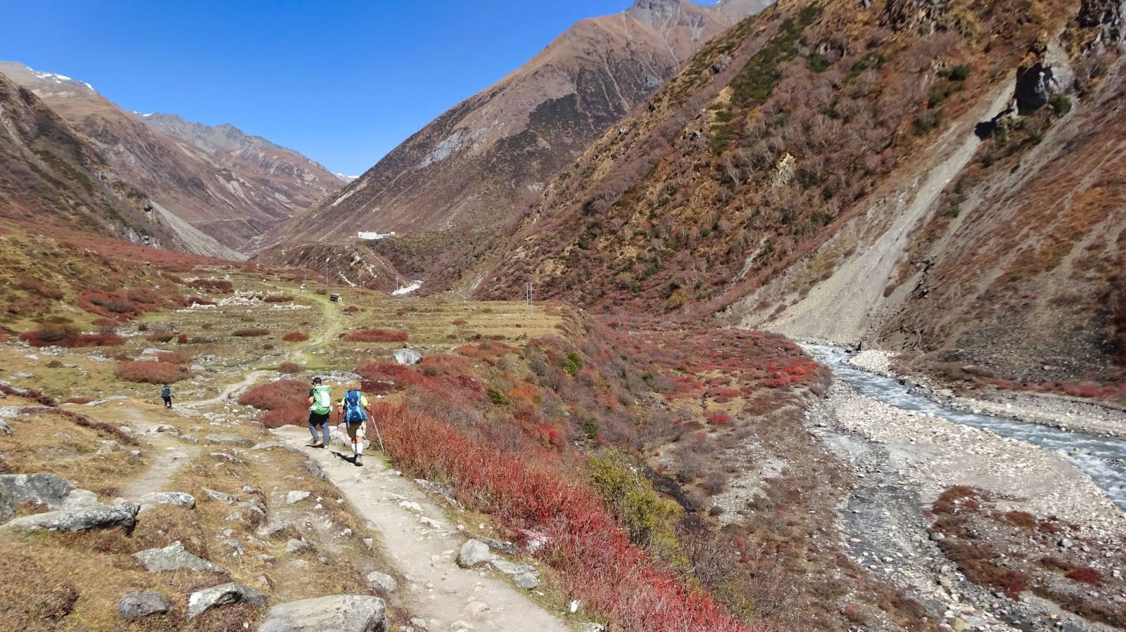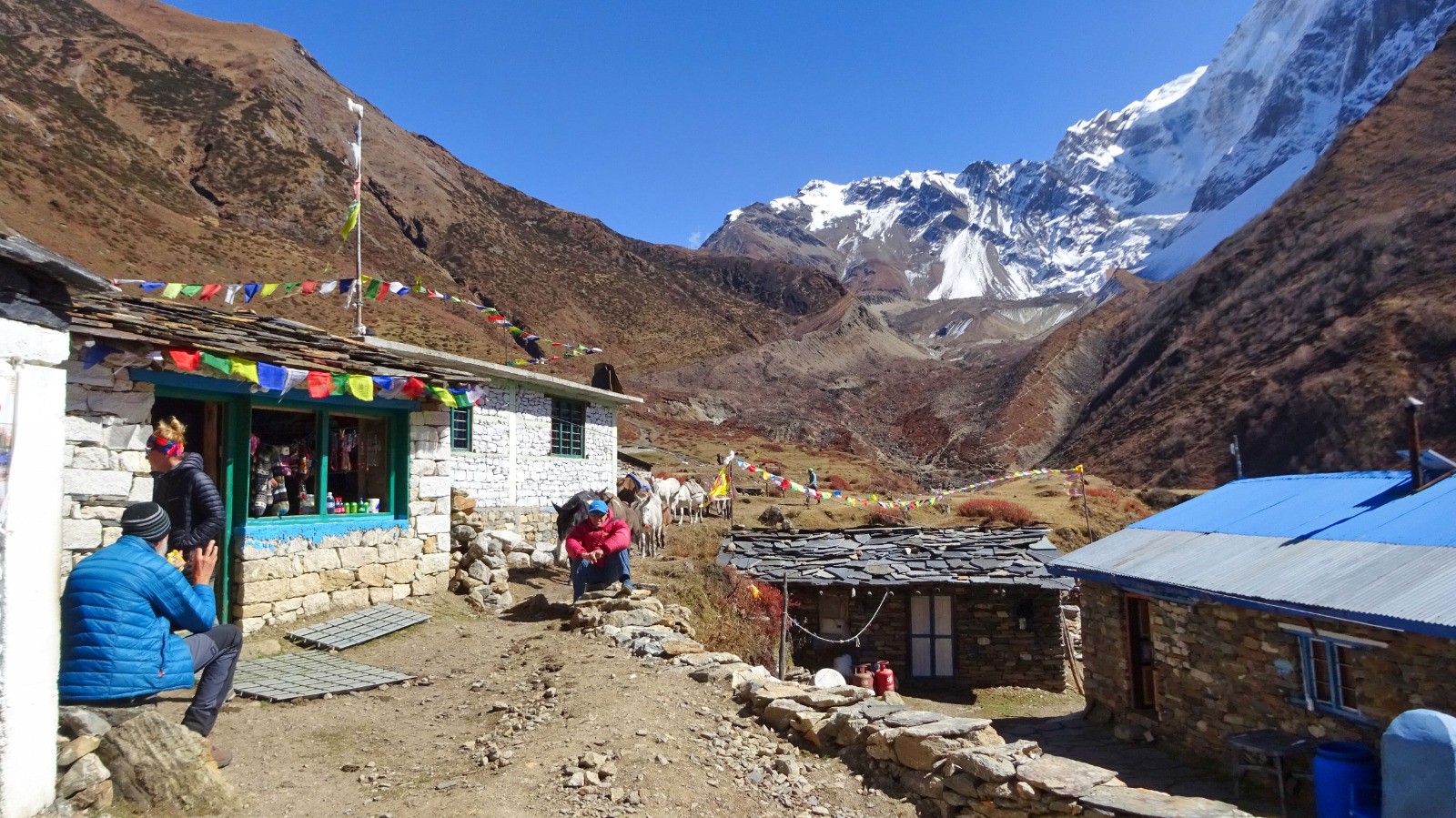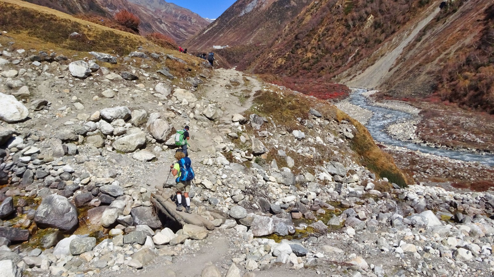 La suite pour rejoindre Samdo c'est du faux plat montant qui longe la rivière, à la traversée du torrent une belle montée très raide pour rejoindre le plateau puis Samdo, le vent froids se lève.