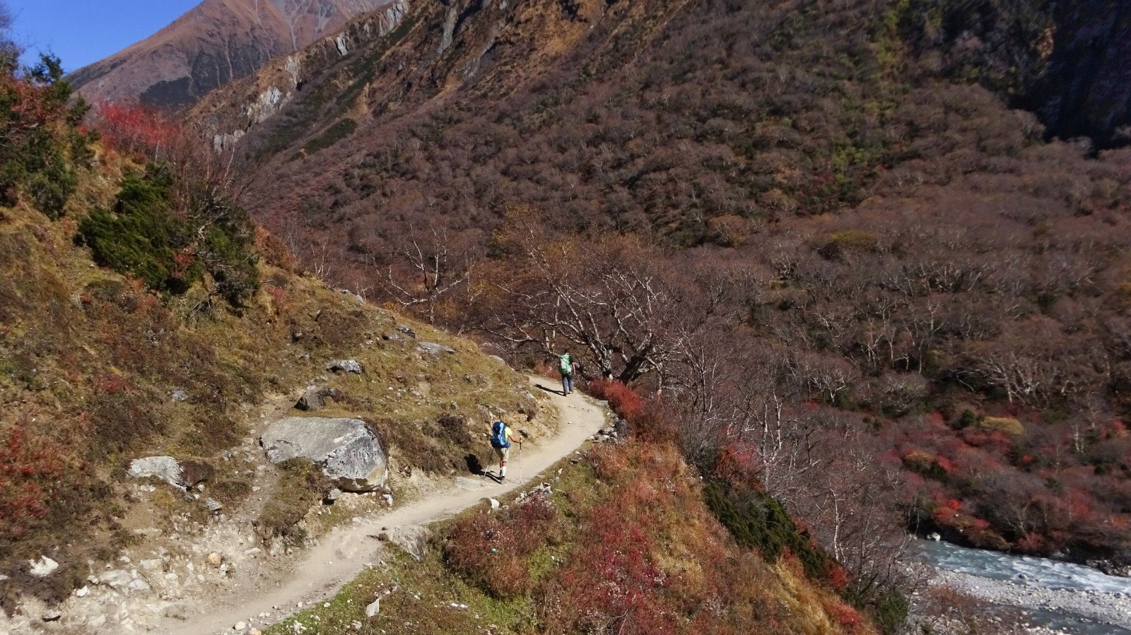 La deuxième montée bien raide se présente, on finit par rejoindre le sentier du camp de base qui nous conduit au circuit du Manaslu.