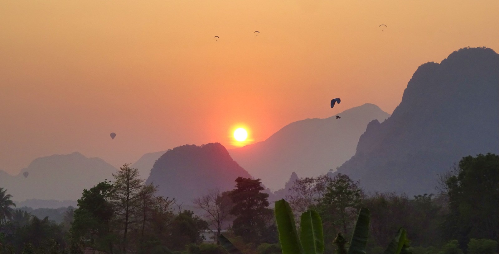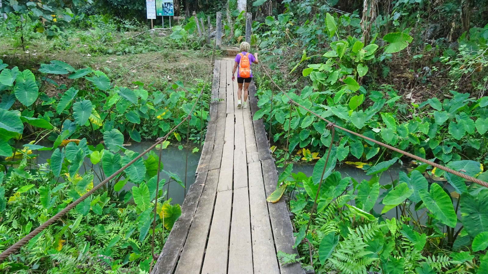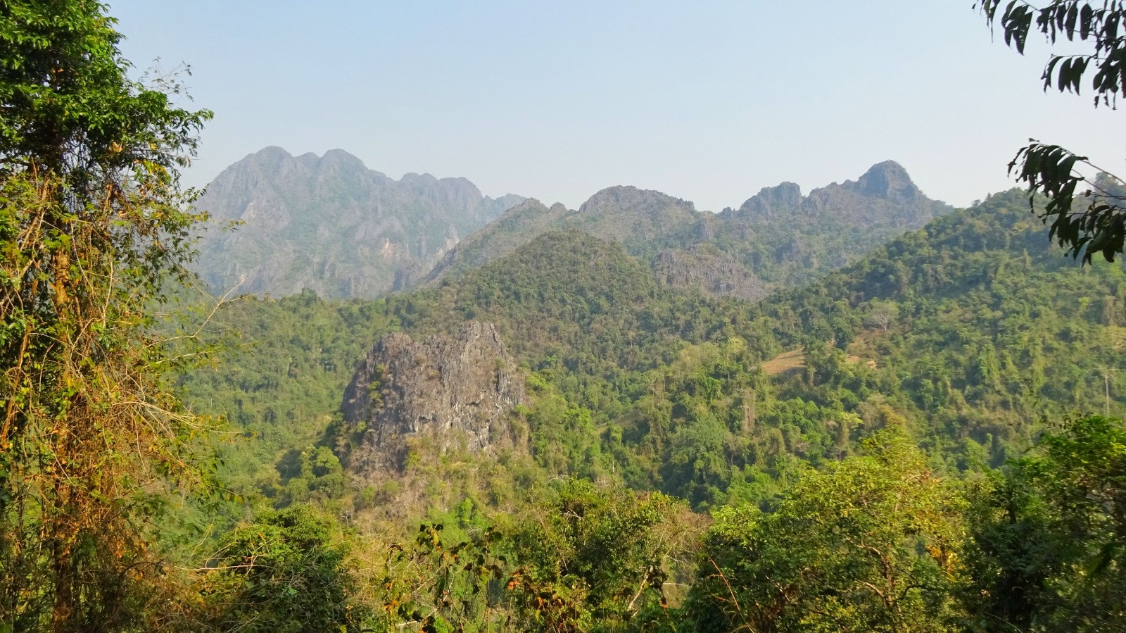 On pose nos sac à dos à Vang Vieng pour 3 jours, après le déplacement depuis Ventiane, on termine la journée à la visite du bourg.