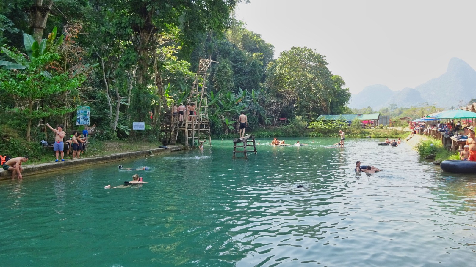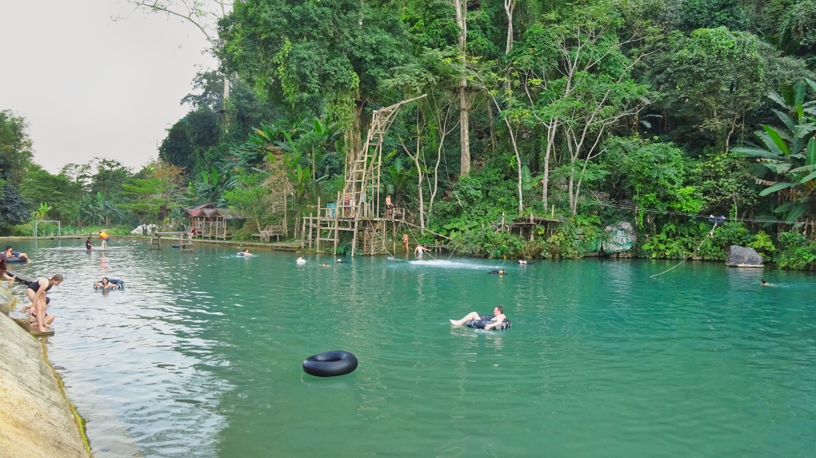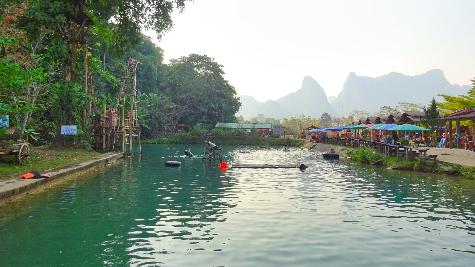 Retour au Green Lagoon (plutôt vert que bleu) qui a commencé à se vider, c’est parti pour la pause baignade.