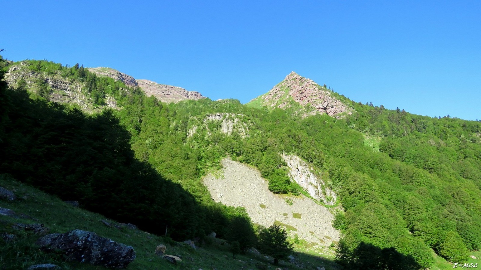 Du parking au terminus de la partie autorisée de la piste on peut voir le Pic d'Aillary dans le fond du Vallon de Belonce.