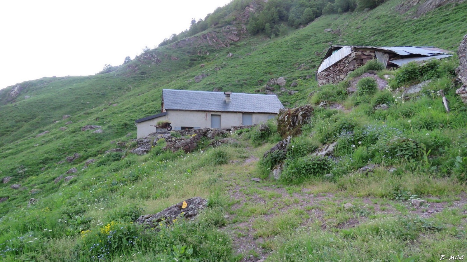 Descendre par la piste jusqu'à la passerelle, traverser le Gave de Belonce prendre la direction de la cabane d'Hortassy, à 15 minutes du départ il faut laisser la piste pour prendre le chemin qui remonte progressivement le vallon. Passages sous-bois et à découvert alternent. A l'approche du fond du vallon, le sentier oblique franchement à gauche pour franchir le ressaut donnant accès à la cabane d'Hortassy. A la suite de la cabane quelques plaquettes jaunes avec flèches balisent le sentier qui reprend une montée progressive en décrivant un très large arc de cercle vers la droite en prenant la direction du Col de Saoubathou. (Ne pas aller à ce col). A proximité de la cabane de Lapassa on rejoint le sentier qui relie le Col de Saoubathou et le refuge d'Arlet, prendre sur la gauche, une trentaine de minutes environ sont nécessaires pour arriver au refuge.
