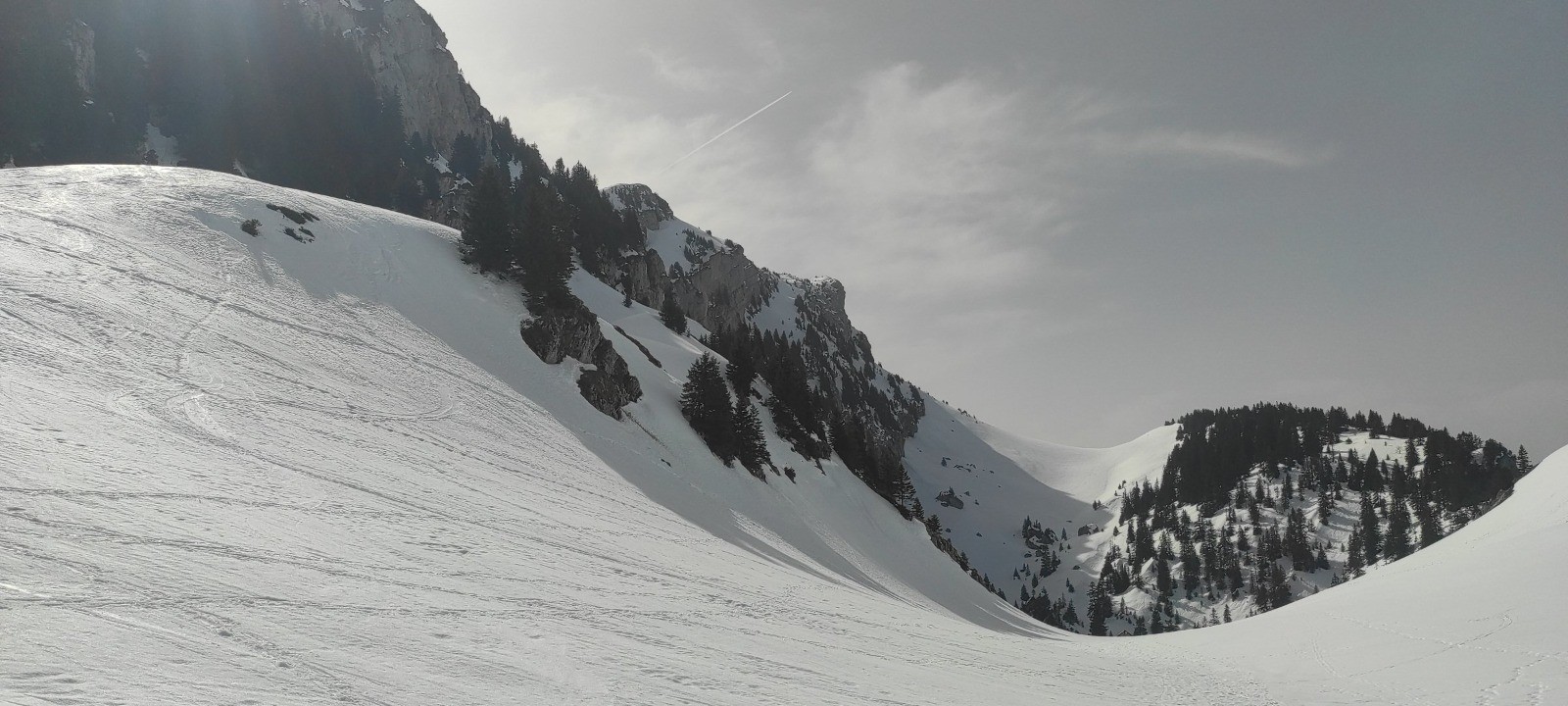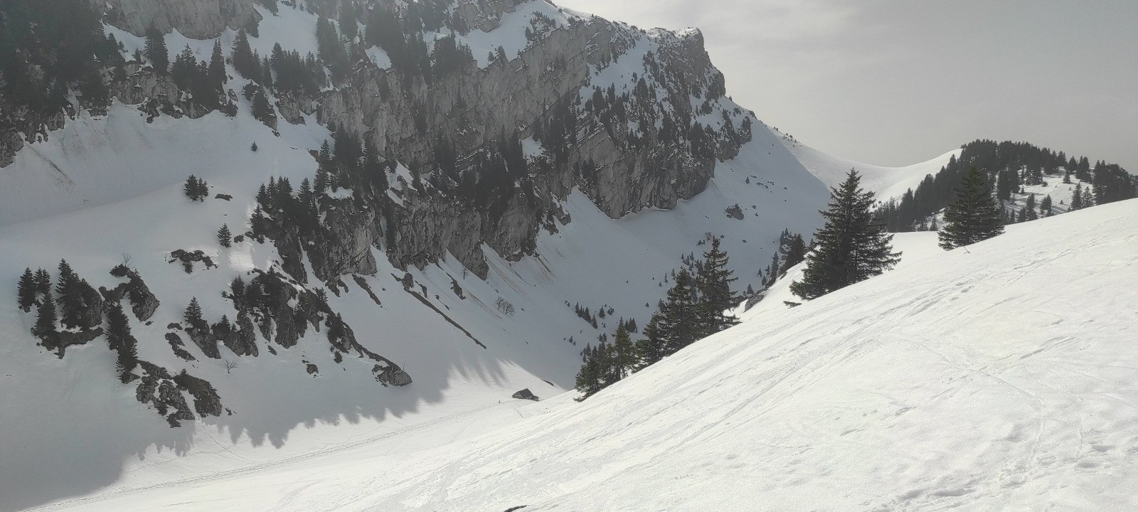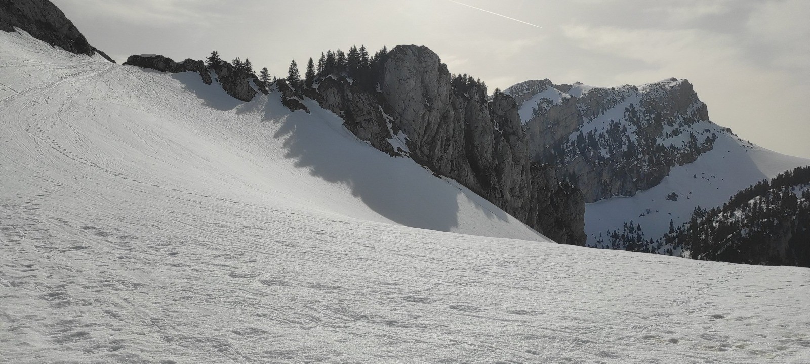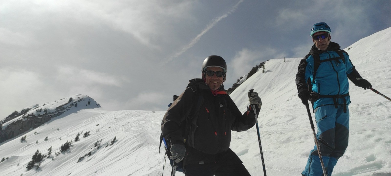 Croisé Olivier et Xavier sur le retour, ils ont décidé tard hier au soir de venir. Je les retrouve après la descente raide ( ou j'ai mis les couteaux trop tard à la montée.) pour rechausser afin de revenir au col de l'Échaud.