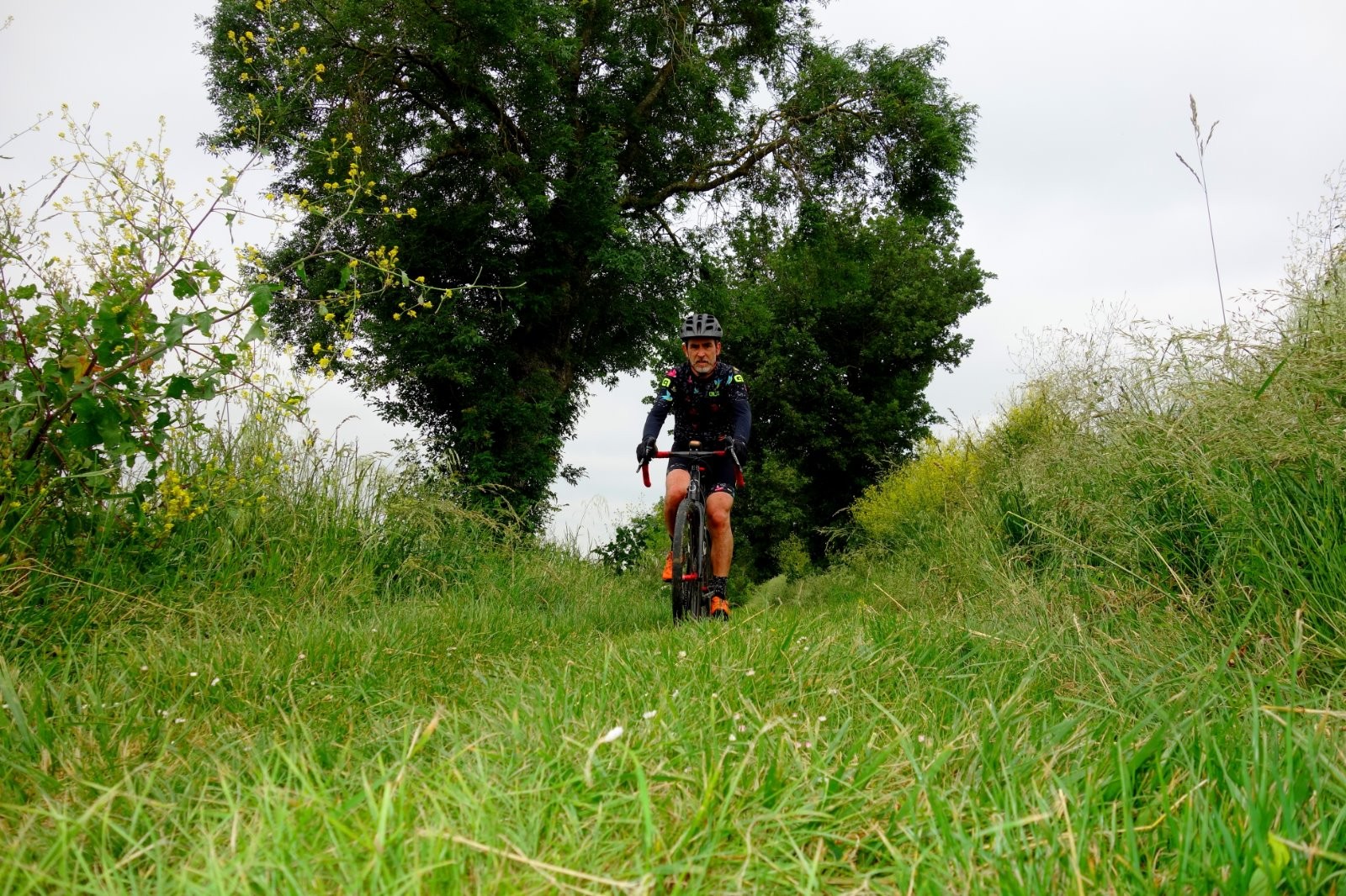 Boucle longue et malgré tout assez exigeante : du vrai offroad, quelques coups de cul, du technique, un peu de gras en cette saison et surtout sur les chemins non balisés (et il y en a beaucoup), les herbes hautes et très denses qui m?ont obligé plusieurs fois à descendre de vélo, pousser, enlever les herbes prises dans la cassette et le dérailleur.