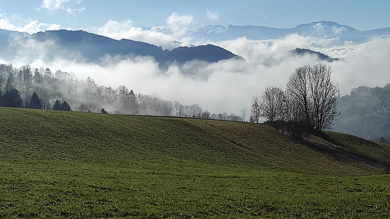 Au dessus de la grisaille de la vallée.