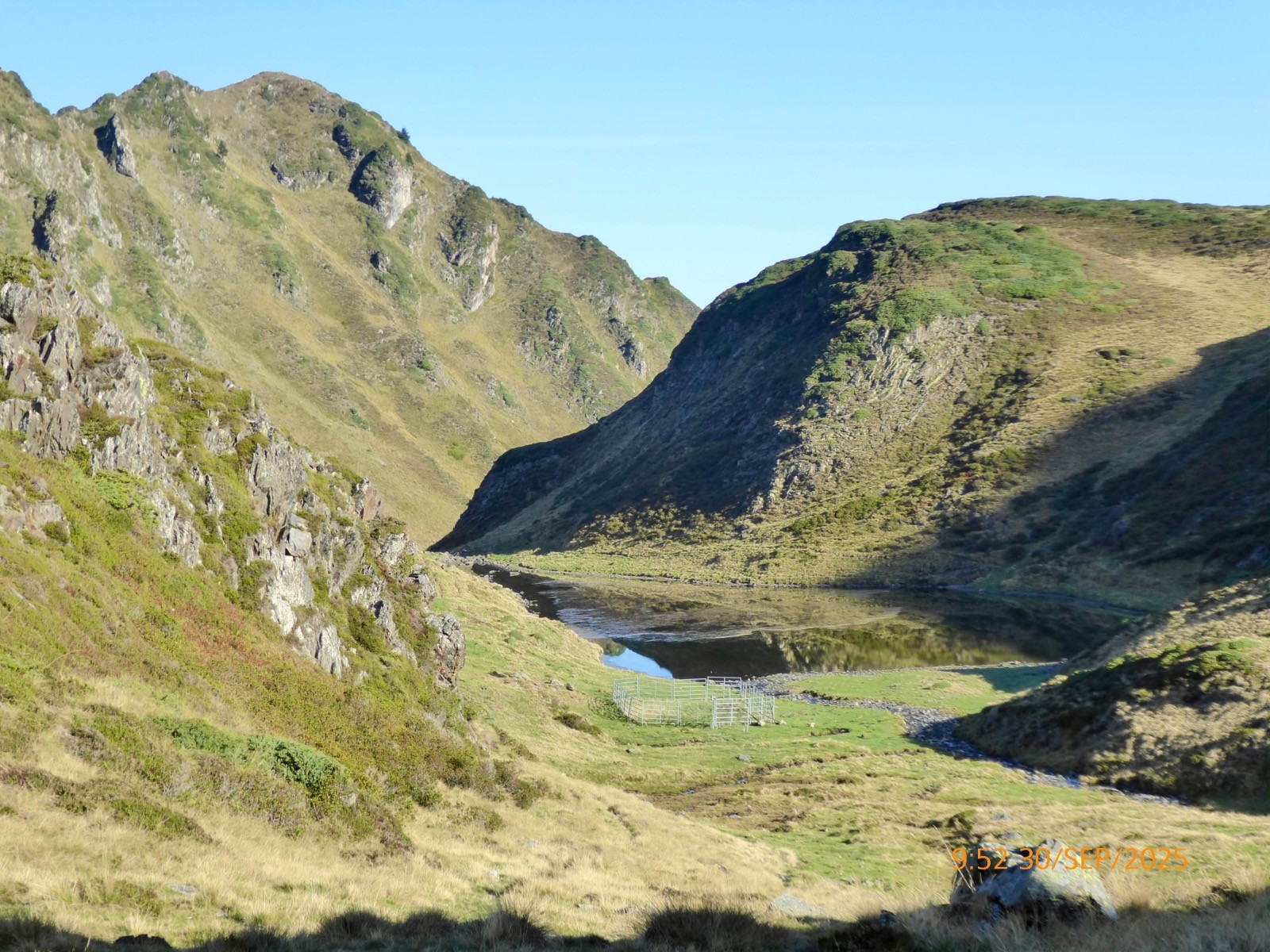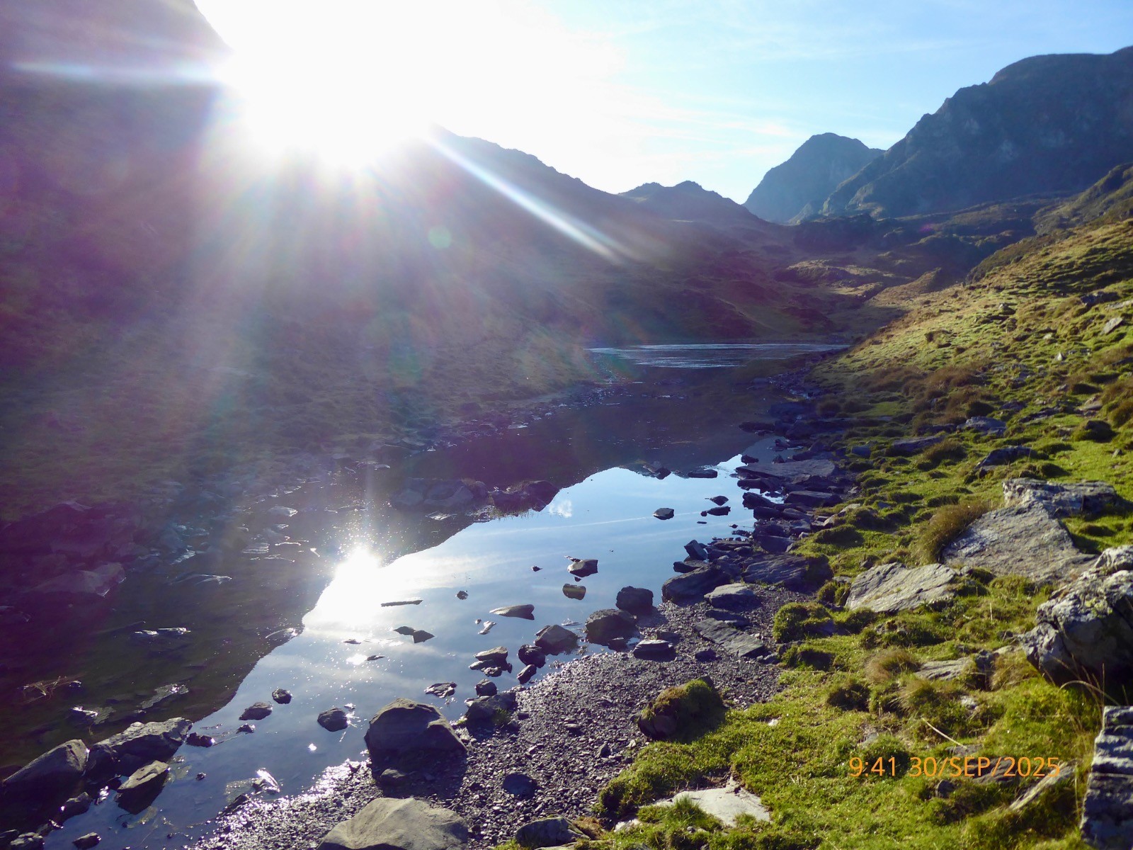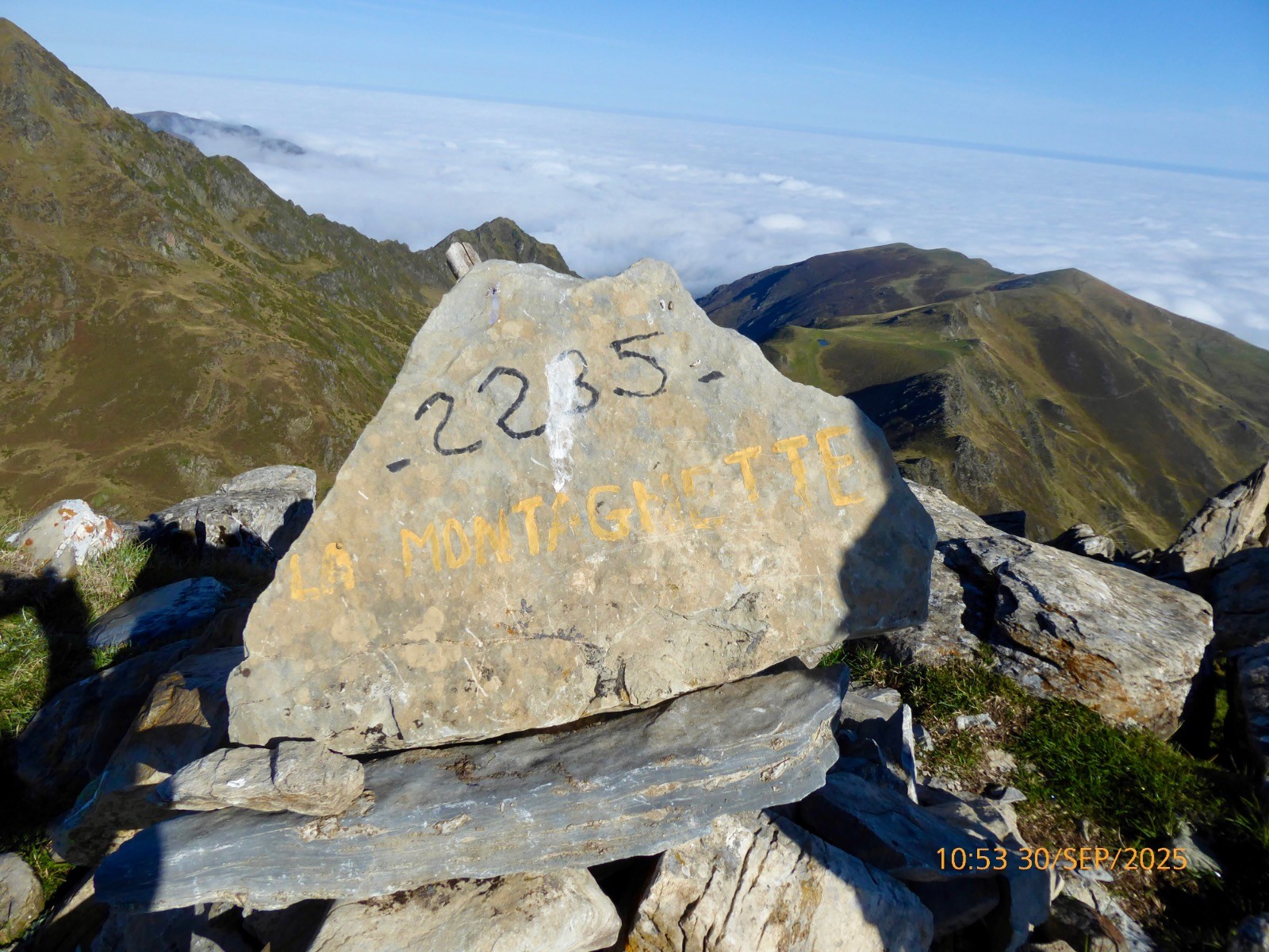 Voilà une boucle originale . Depuis le col de la Courade nous prendrons un sentier qui monte S/O et qui nous fait surplomber le vallon de Binaros. Ce sentier est très peu fréquenté et il ne s'améliore qu'à L'Artigole. Beaucoup de dévers... Il nous fait passer près des lacs de Binaros inférieur et supérieur qui sont en comblement et où est présente la cyano-bactérie. Nous passons près du lac de l'Oeuf où les rubaniers sont rois.La montée au col d'Arize est courte mais soutenue, la crête qui mène à la Montagnette, elle est aisée. Tout ceci sous le maître des lieux; le Pic du Midi de Bigorre. Nous aurons la chance de voir un grand cerf avec une biche, mais pendant toute la montée dans le vallon de Binaros nous avons profité du brame de ces animaux !! La descente vers le lac d'Aygue Rouye est prononcée mais sans danger aucun et le sentier est bien marqué. Ce Lac d'Aygue Rouye a une superficie de 1ha , il est à 1595m et sa profondeur est de 2m.En occitan, Aygue Rouye signifie l'eau rouge. Il fait partie d'une zone naturelle protégée, classée ZNIEFF (Zone Naturelle d'Intérêt Ecologique, Faunistique et Floristique. Toute la journée s'est déroulée sous un beau soleil et la brume est montée alors que nous rentrions. Une jolie course agréable.