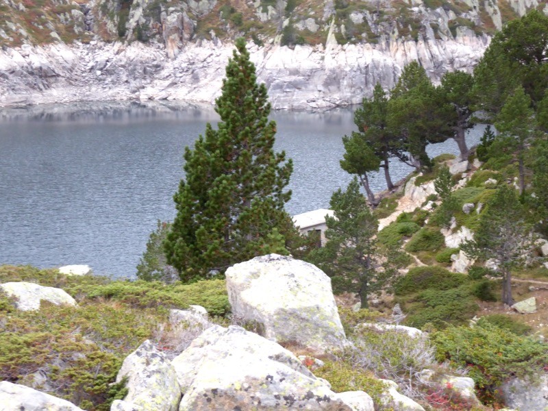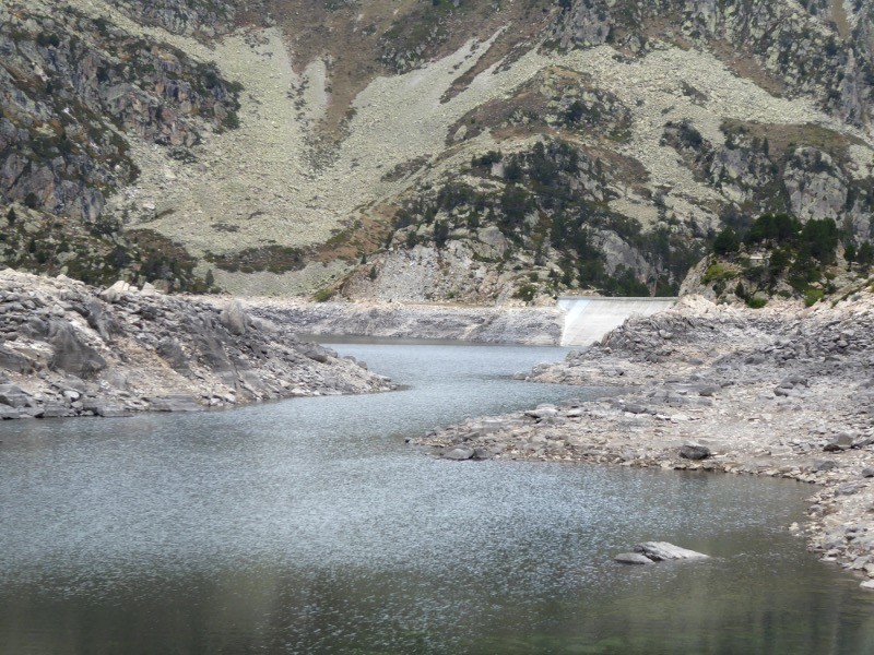 Refuge de Campana de Cloutou, bien que non gardé, il reste ouvert La visite de ce système lacustre permet de mesurer les effets du réchauffement..Le niveau des lacs est extrêmement bas .... Superbe vue sur le Pic de Bastan et le Pic de Portarras séparés par le col du Bastanet .