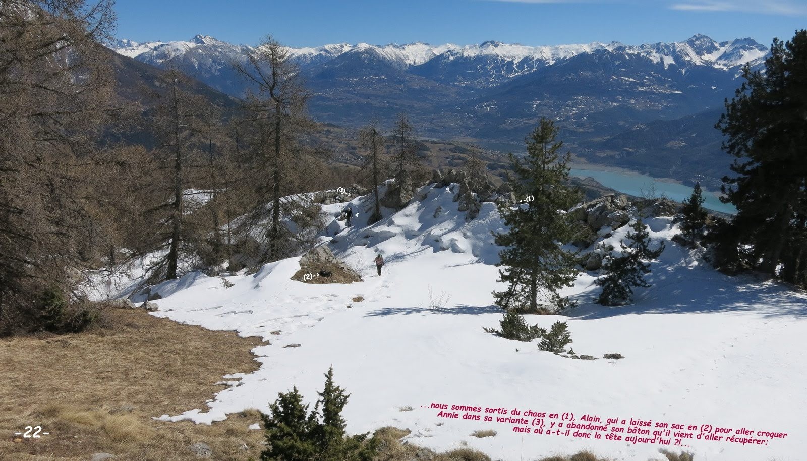 Où aller un jour d'hiver aussi peu enneigé ? Fatigués de mettre nos raquettes à rude épreuve dans les cailloux, nous avons opté pour une randonnée pédestre en versant Sud en espérant bien ne pas trop nous mouiller les pieds, d'où cet itinéraire en partie improvisé in situ !