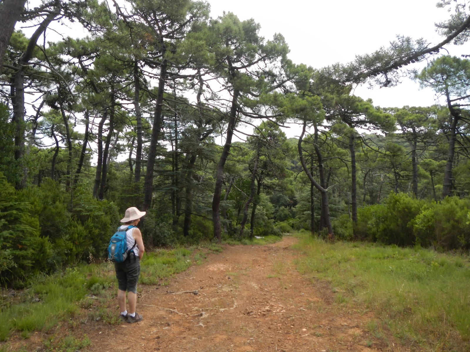 La forêt de Fontfroide est une forêt de type méditerranéen. La rando que nous avions projeté de faire suit une route forestière très large, très dégagée donc sans ombre d'autant plus qu'elle a brûlé récemment et que les services forestiers de lutte contre l'incendie ont déboisé largement de part et d'autre de la route forestière.