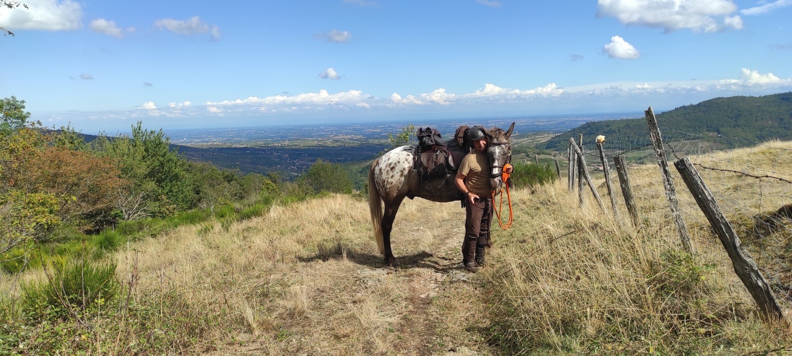 Belle chambre d'hôtes dans une grande bâtisse. Les chevaux : mis dans le parc du chien déjà clos avec porte pas très large car arrivée sous la pluie battante et nous n'avions pas le courage de faire le paddock avec ses piquets et fils mis à disposition.