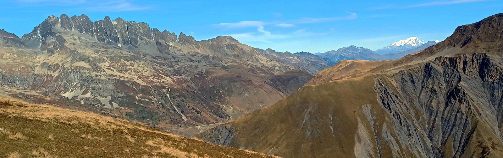 Du col il faut encore monter 200m de D+ pour enfin atteindre le sommet des aiguillettes (2547m). La vue, sur cette fin de parcours, est extraordinaire : Mont Blanc, la Vanoise et plus près le lac de Grand Maison dominé par les Aiguilles de l'Argentière.