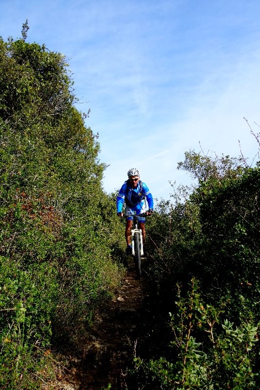 Beau circuit au départ de Trèbes avec une mise en jambe le long du canal vers Marseillette pour attaquer le massif. Passage deux fois au Signal de l'Alaric, point culminant, pour deux descentes très techniques (en tout cas pour mon niveau). On part ensuite vers Montlaur pour suivre le versant sud du massif. J'avais prévu deux superbes descentes (et donc deux montées) pour rallier Monze et une fin du circuit par le lac de La Cavayère. Finalement, après Montlaur, on est allé chercher les ruines du château de Miramont, superbe site, d'où une fin de circuit moins intéressante ensuite après Barbaira.