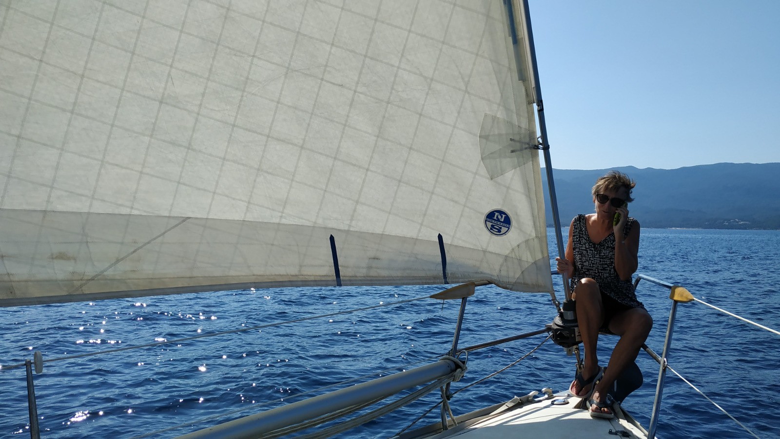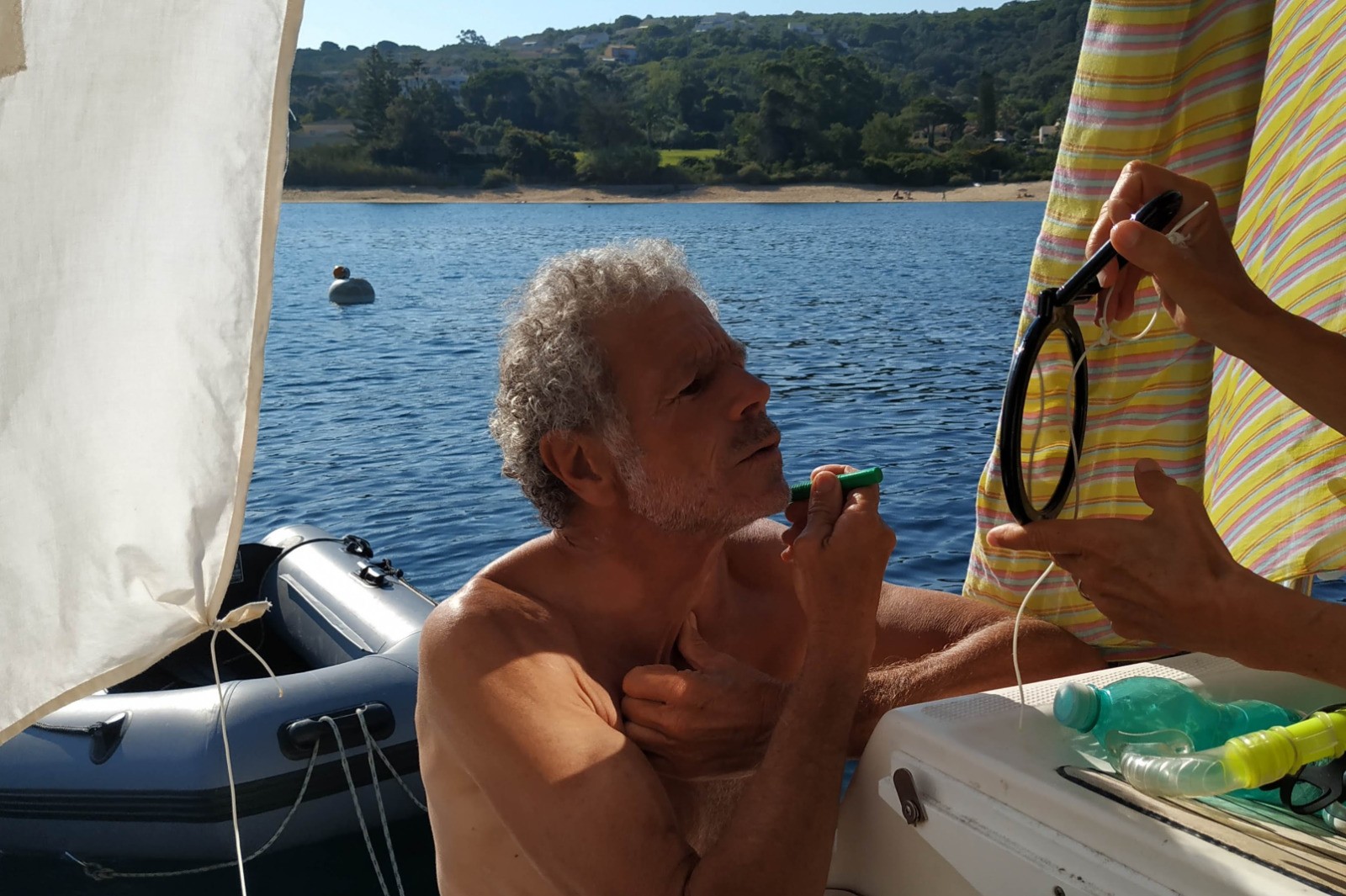 Nage matinale avec les sars. Personne ne nous a rien demandé pour le coffre. Nous quittons le mouillage en longeant la côte à la voile. Sans arrêt pique-nique à midi, nous naviguons jusque vers 15hrs pour faire halte devant une très jolie petite anse "privée" avant le fond de la baie de Cupabia.