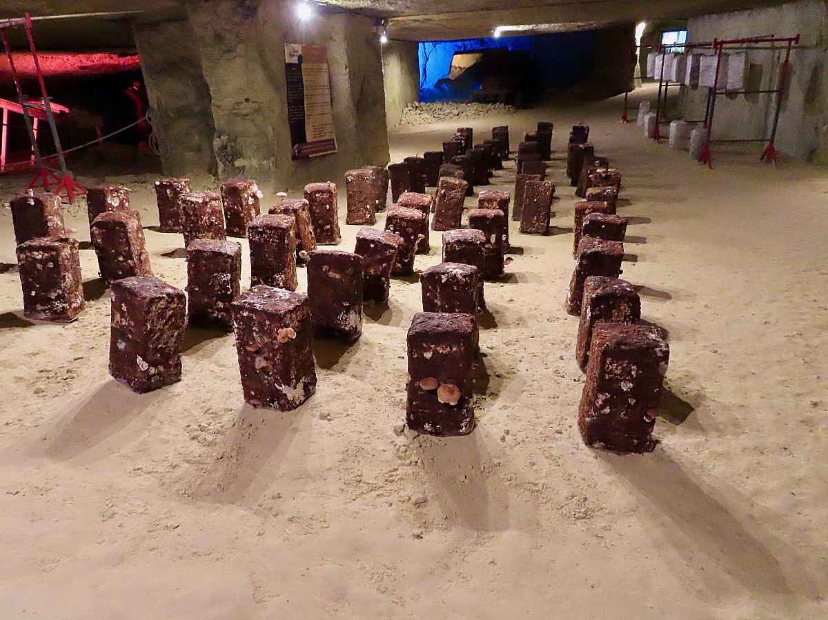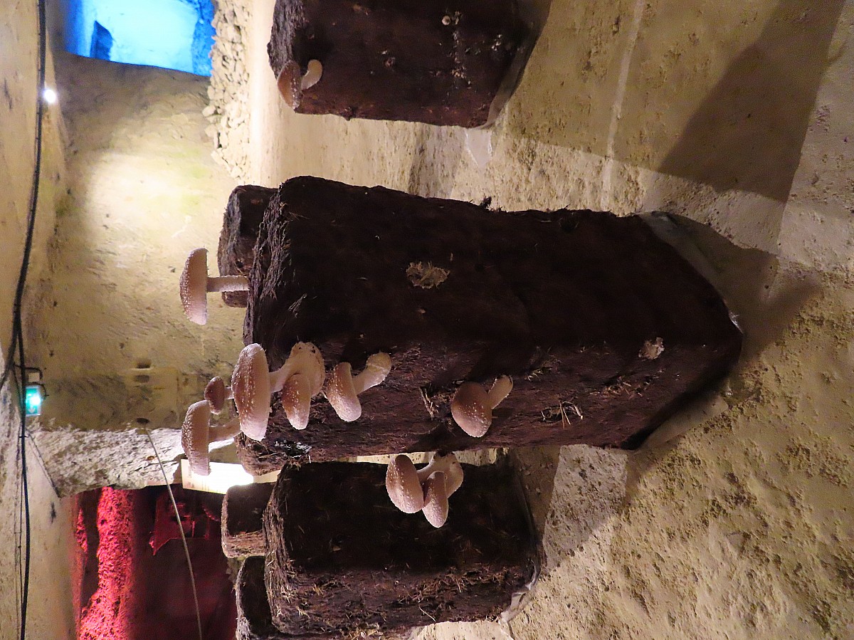 En 1900, l'extraction de la pierre de tuffau prend fin et des centaines de kilomètres de galeries se transforment en champignonnière. Nous découvrons les techniques de la culture des divers champignons produits sur le site : champignons de Paris, pleurottes, shiitakés...
