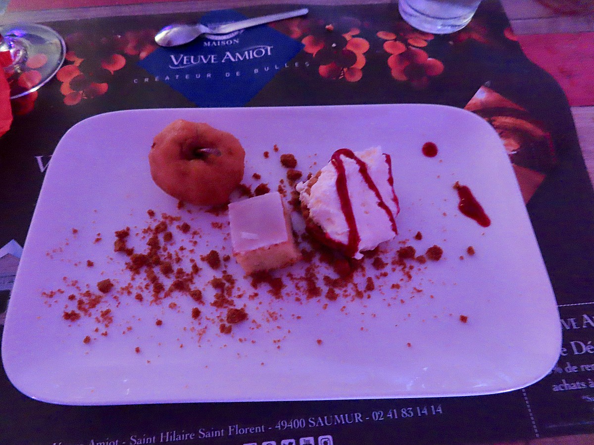 Fin de la visite par le délicieux "repas découverte" du restaurant troglo : galipettes farcies, gouline, pommes tapées...
