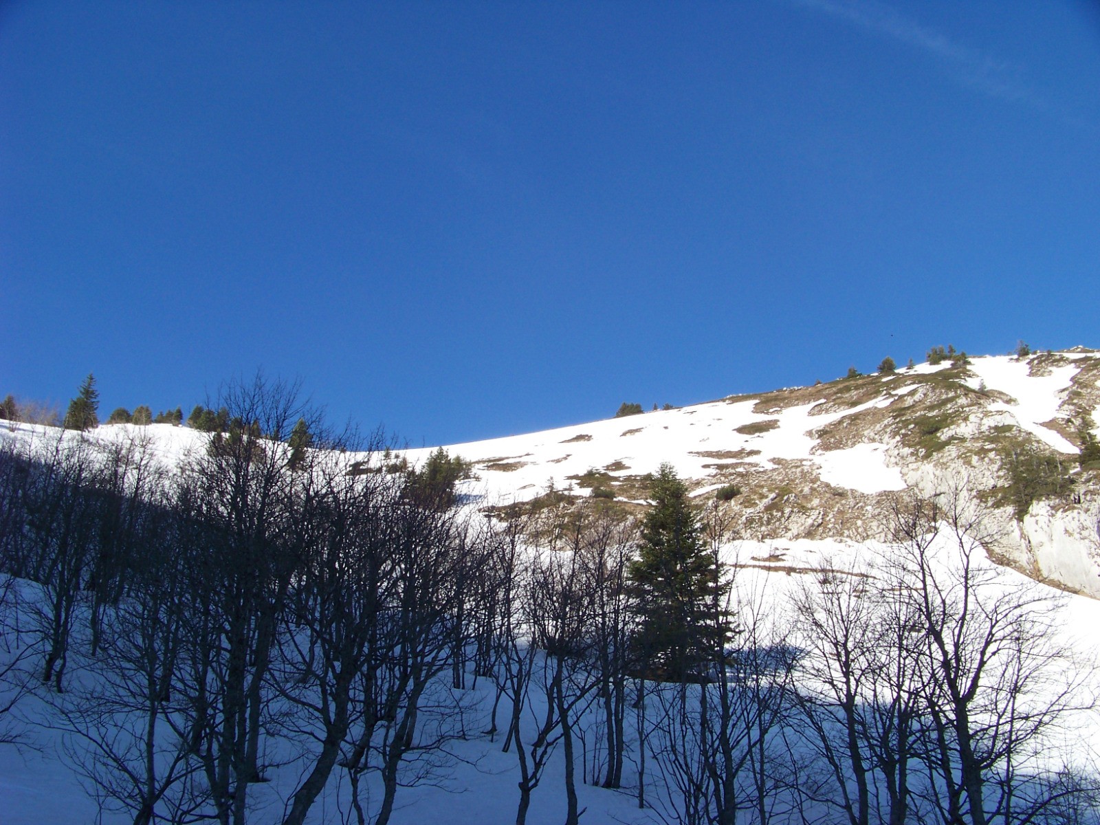 Par change, et malgré les grandes pluie de ce mois d'Avril, la neige persiste jusque bas dans ce frigo qu'est ce versant de la Charmette.