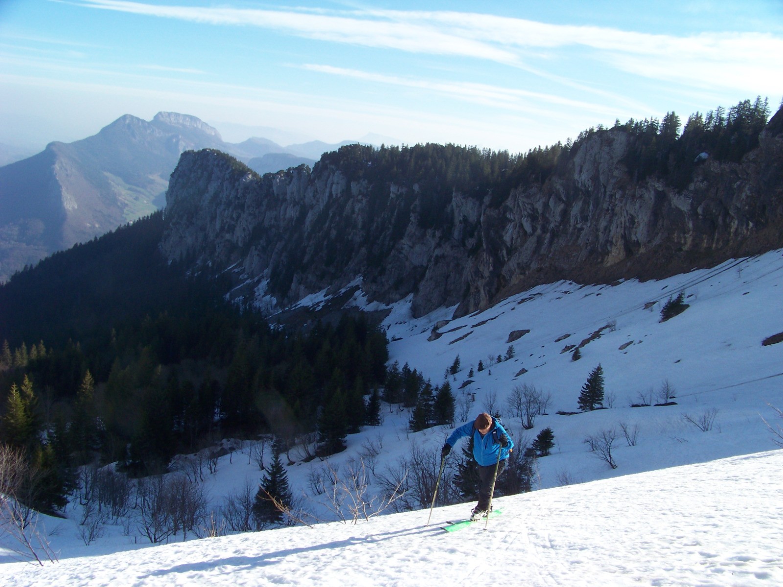 Grande douceur, grand beau temps, avec un vent soutenu au sommet, ou on arrive quasiment skis aux pied.