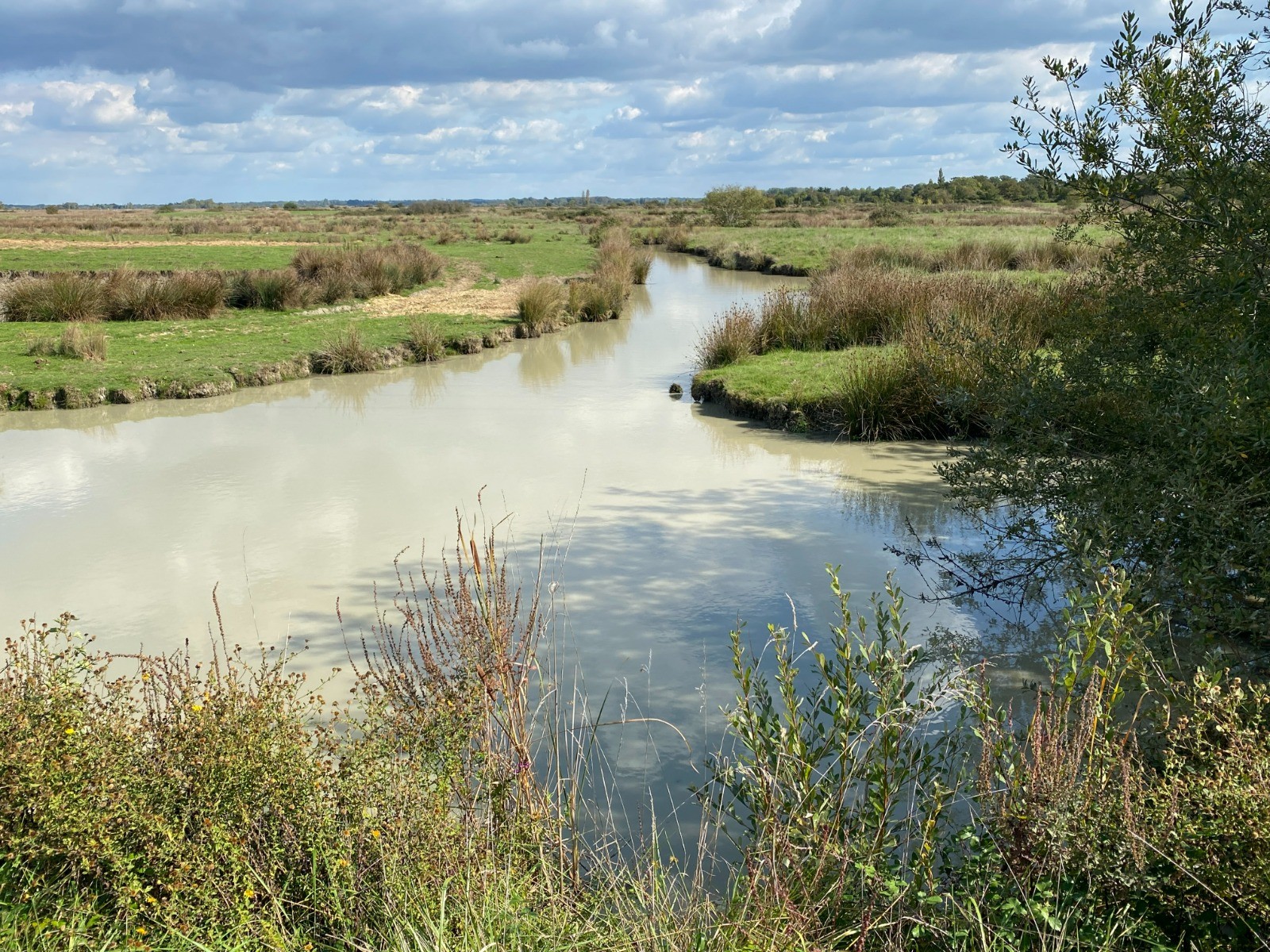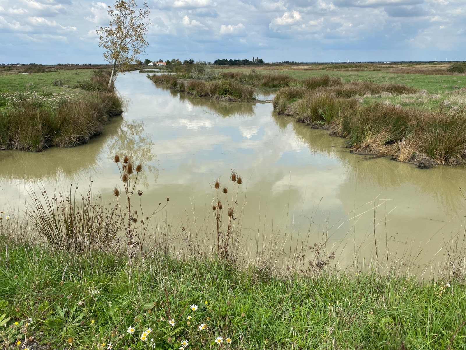 Les sentiers, souvent en digues, permettent de longer les canaux et d’avoir des vues dégagées sur le marais.