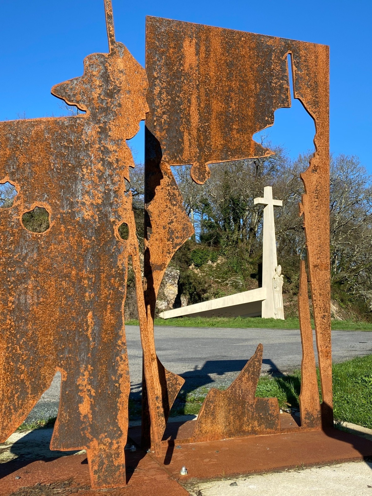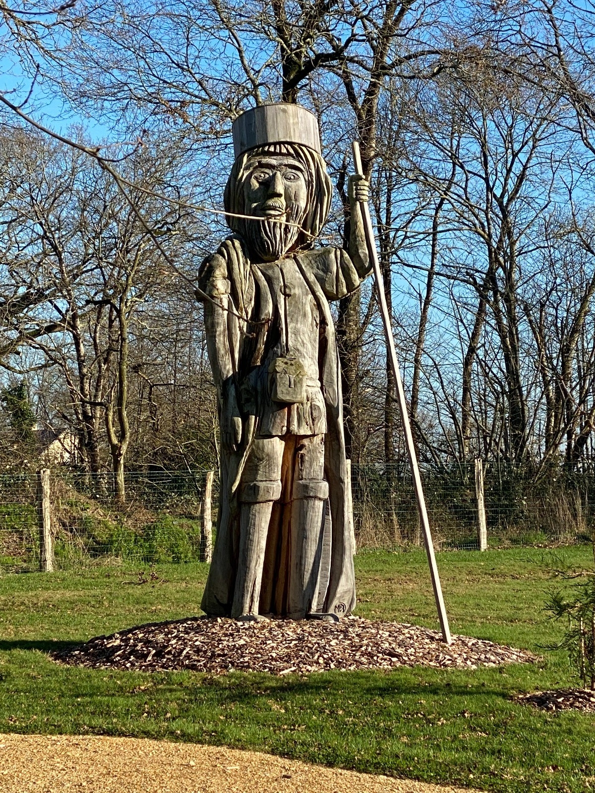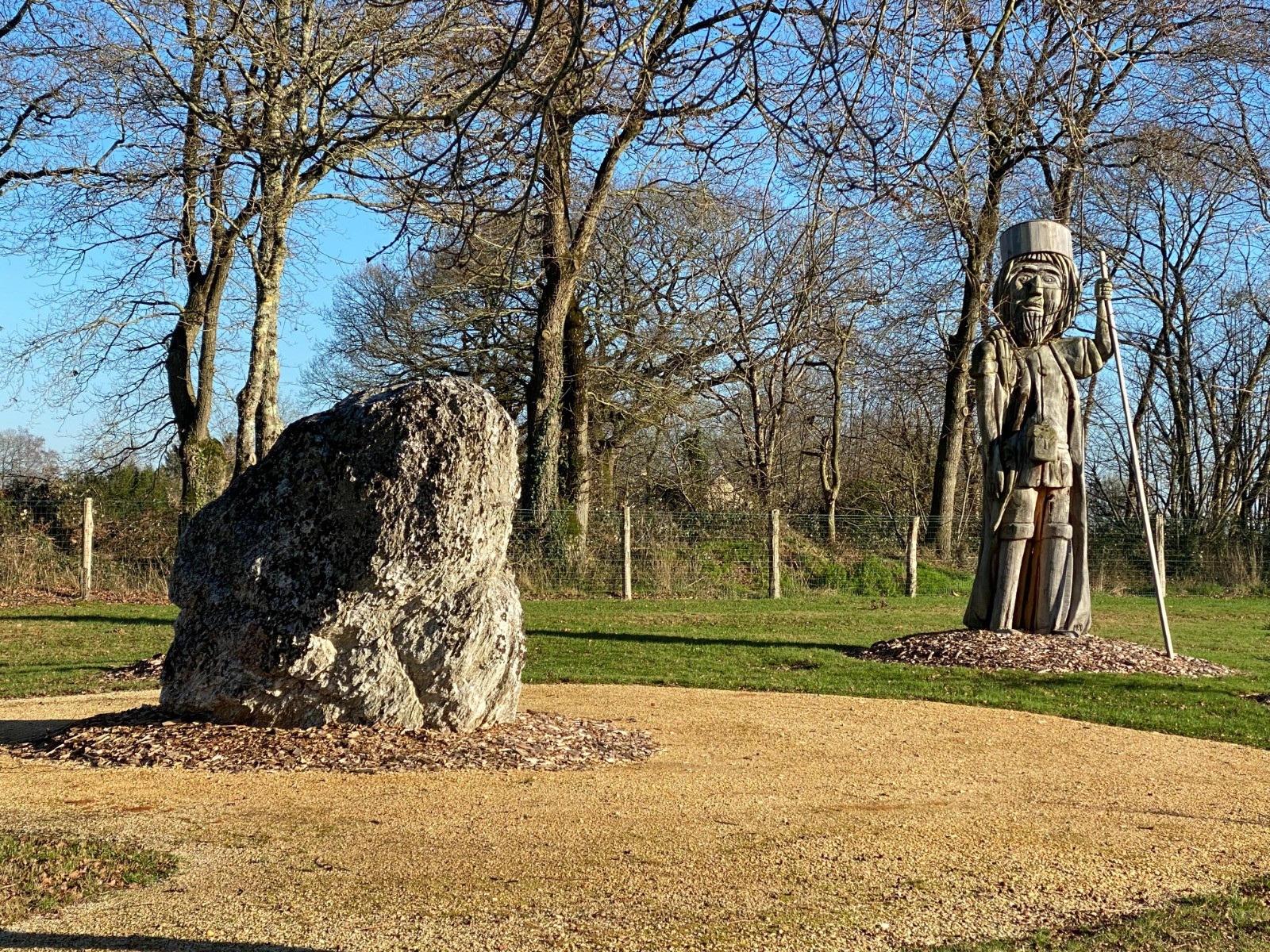 Ce menhir est accompagné d'une gigantesque et magnifique sculpture en bois.