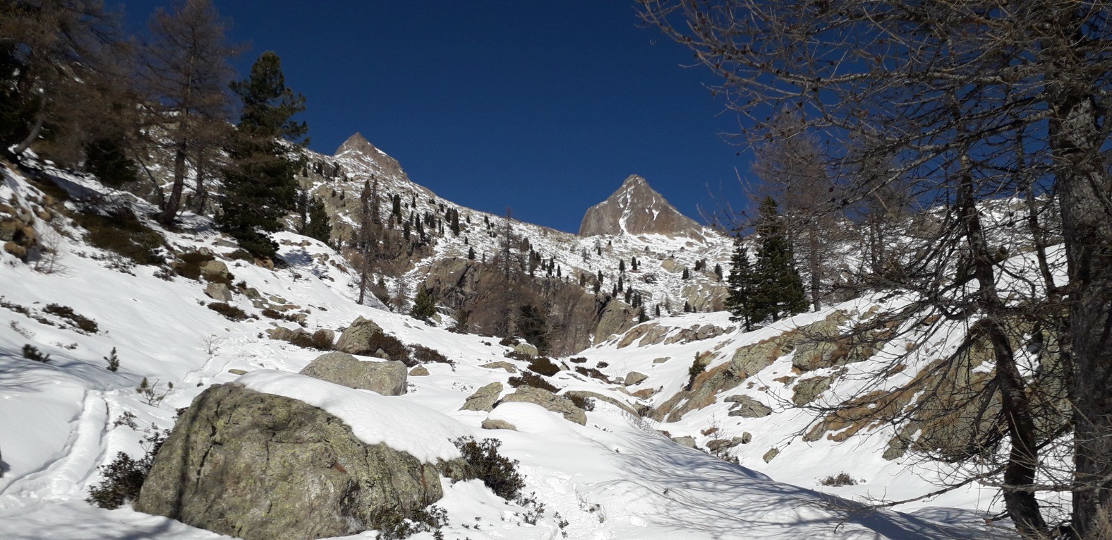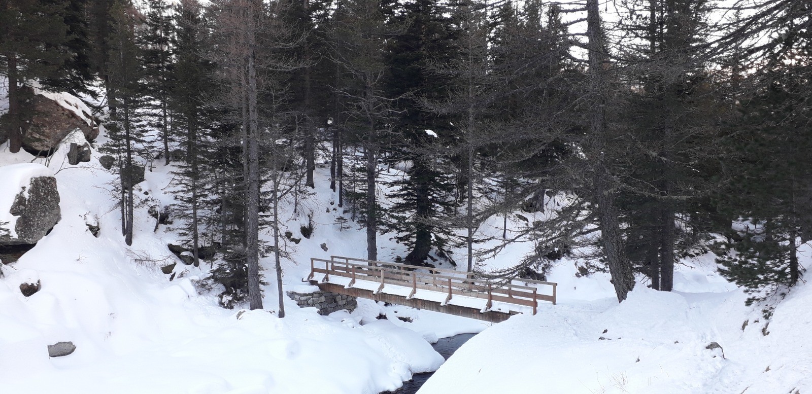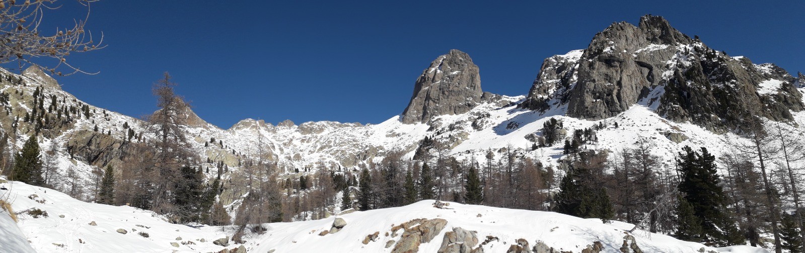 Sortie réalisée le 18/02/22. Le refuge de la Cougourde constitue avec le lac de Trécolpas l'un des 2 sites de rando les plus accessibles au départ du Boréon mais celui du lac est plus exposé aux risques d'avalanche et il était plus confortable au regard des conditions présentes de cibler le refuge (fermé) en bénéficiant par ailleurs de ses installations pour une pause méridienne à mi-parcours. Le départ du circuit s'effectue depuis la billetterie du parc Alpha (Loups) par une belle piste damée aménagée (circuit nordique), qui se prolonge en parcourant de superbes décors. 1ère partie relativement aisée en longeant le cours d'eau gelé du Boréon qui serpente à travers de magnifiques sapinières soupoudrées de neige jusqu'à la balise 425 (Km 4,51) avec un petit ressaut précédant le pont de Peïrastrèche. La 2nde composante est plus raide, de la B 425 jusqu'au plateau sommital du refuge qui ne se dévoile qu'au dernier moment. Le dénivelé concerné n'est que de 290 m mais l'accès en raquettes peut être malaisé en cas d'ouverture de trace. Très beau plateau enserré dans un cirque dominé par le relief emblématique de la Cougourde, qui surplombe le val du Haut Boréon. En conclusion, belle sortie hivernale recommandée.
