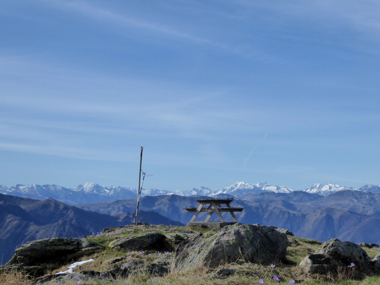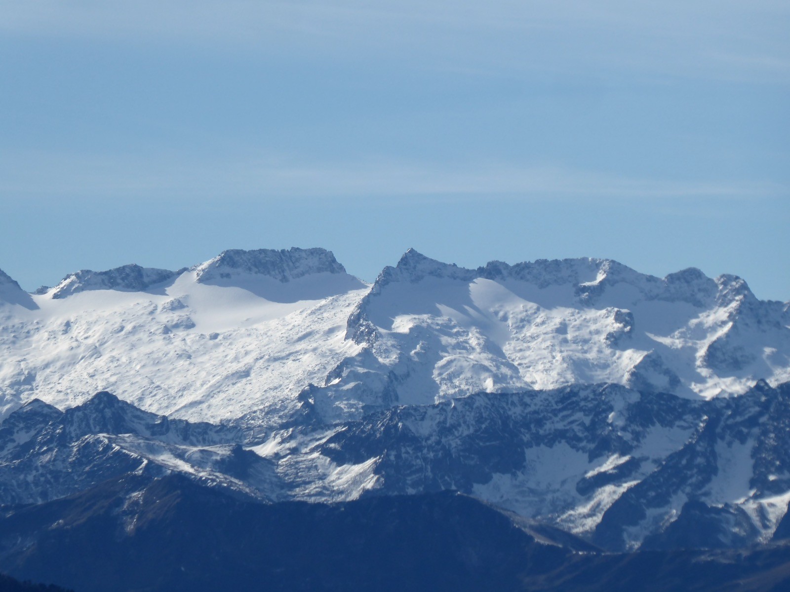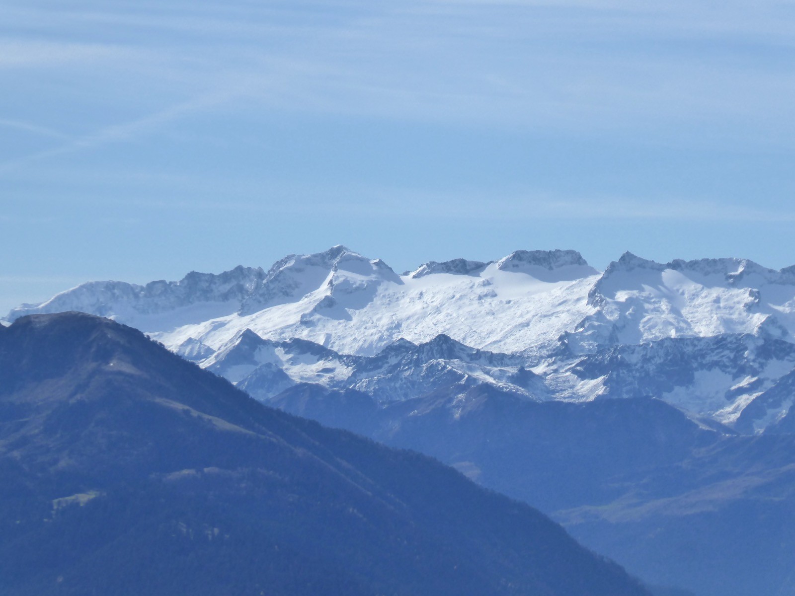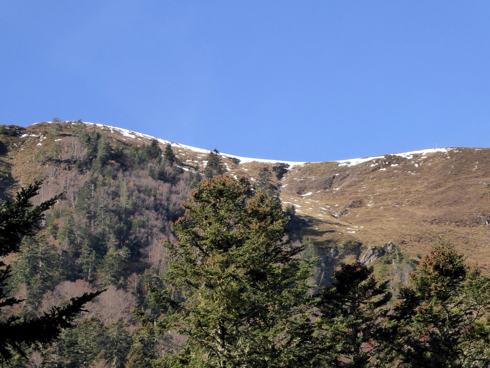 La position de ce sommet lui confère un point de vue magnifique ..... Pic Saillant, Pic du Gar, de l'Escalette , du Cagire,Aneto, Maladeta, Paderne,Boum, Maupas, Perdiguère, Queyrat,Au loin le Pic du Midi de Bigorre,etc etc... Une journée magnifique pour nous la veille du confinement ; la neige que nous escomptions avait disparue en deux jours, seules quelques traces restaient. Le passage dans la forêt nous a réservé quelques surprises dues à une tempête précédente qui avait couché beaucoup d'arbres.Une belle boucle !!!