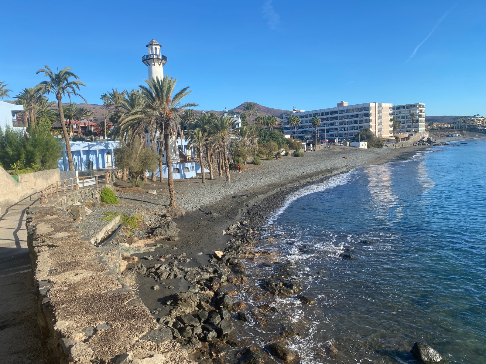 La promenade maritime ( paseo marítimo ) est large, propre et bordée de palmiers.