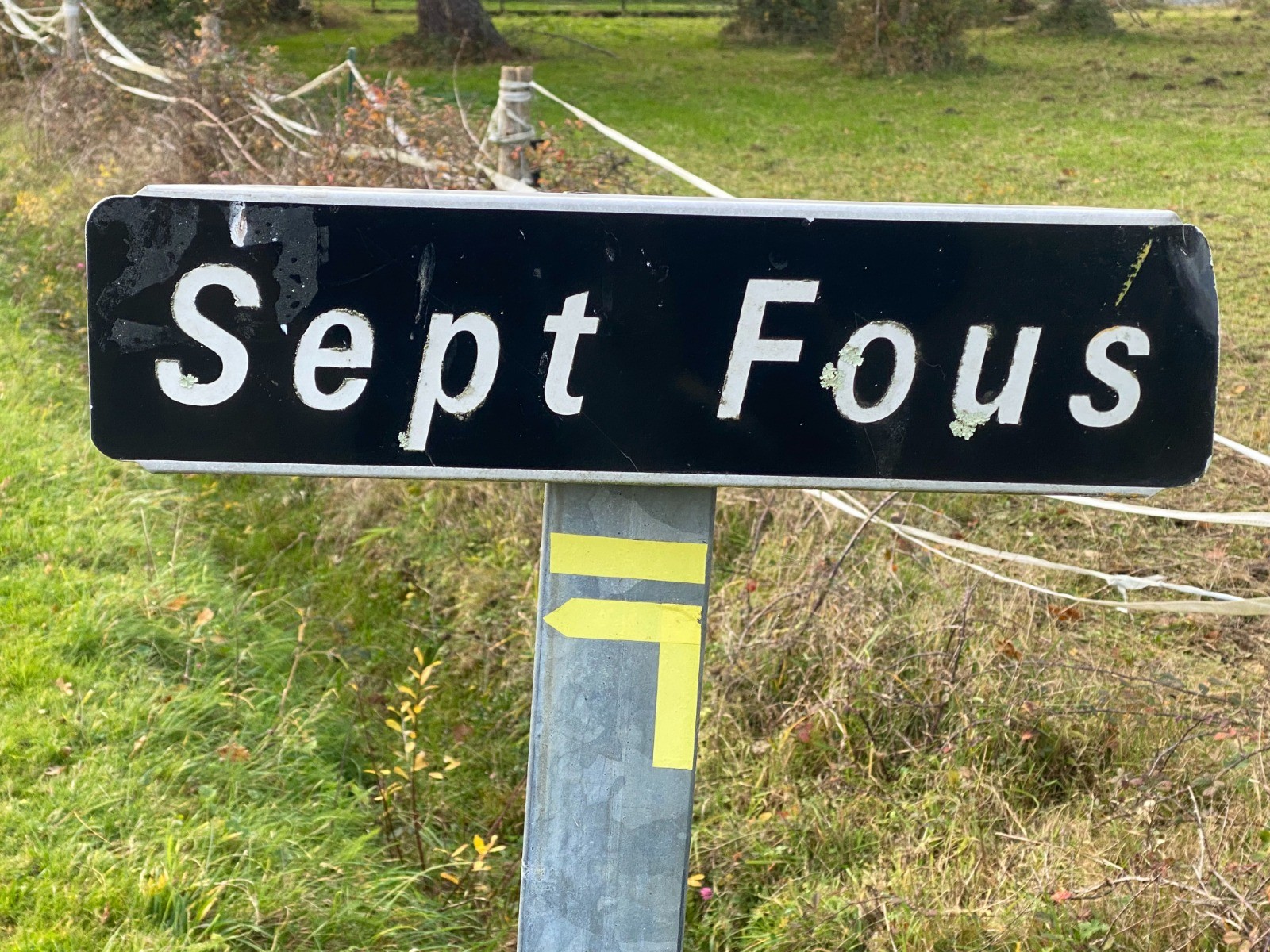 Après avoir quitté la chapelle nous passons dans les "Landes du Bois des Vallées" avant de se retrouver au lieu-dit "Les Sept fous". ( photo no 13 )