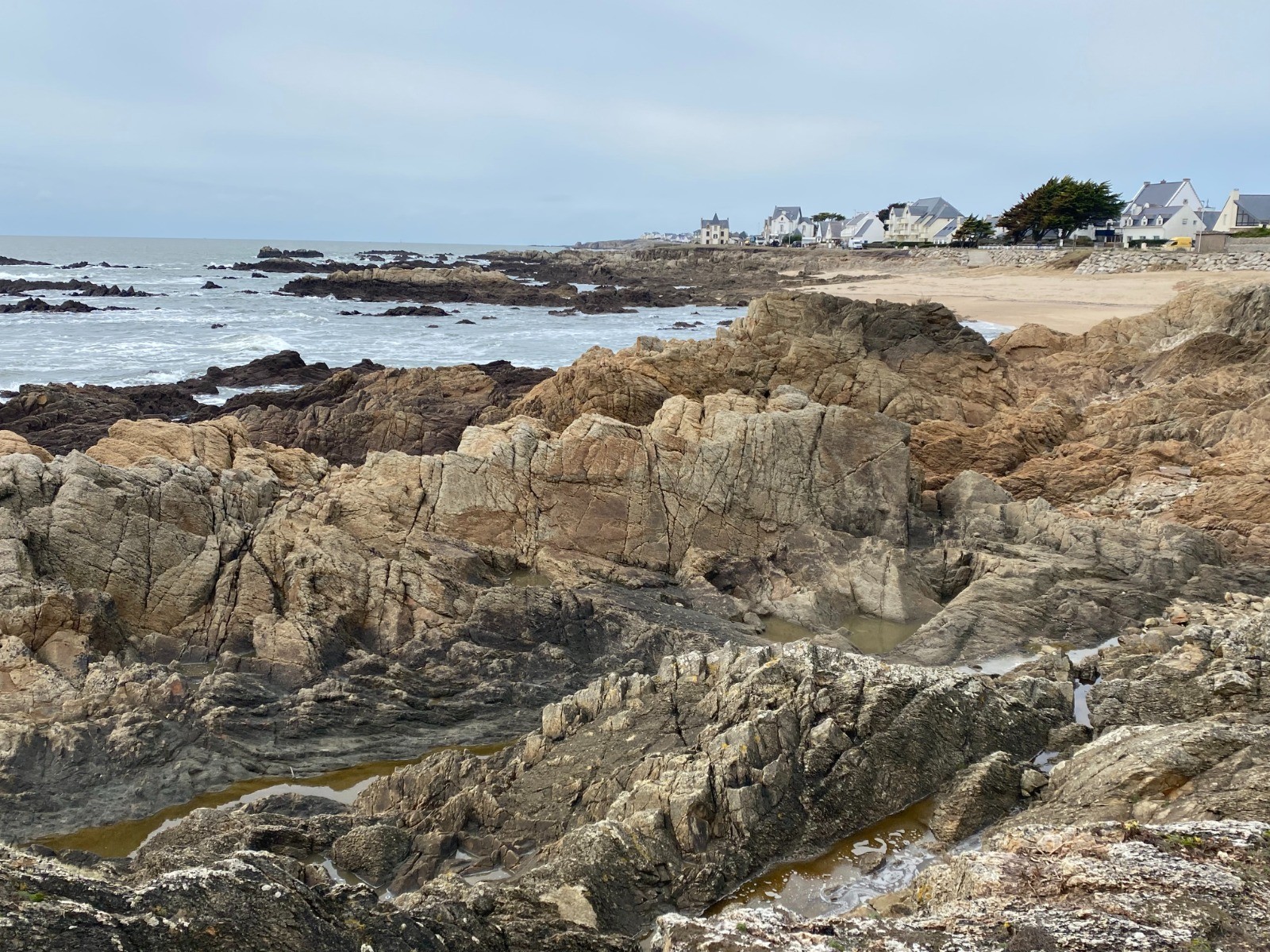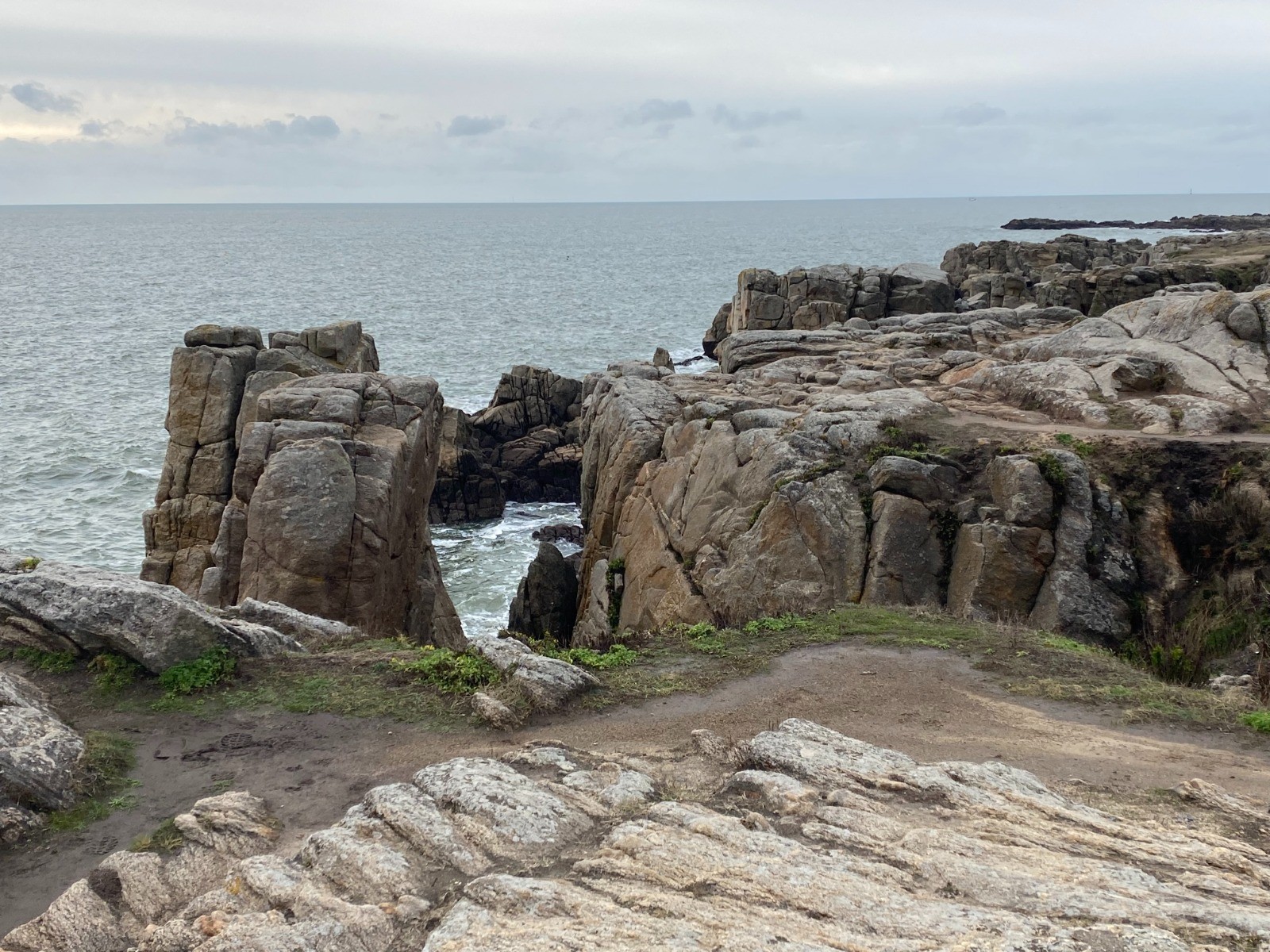 Au bout d'un kilomètre nous voilà sur la côte rocheuse avec les plages de St Michel puis de la grande plage Valentin très prisée par les touristes l'été.