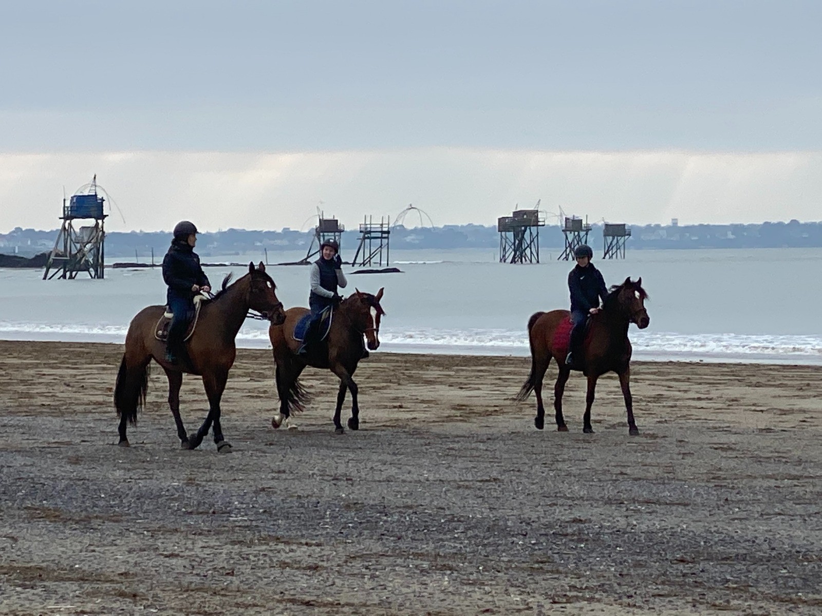 La Plage de la Roussellerie se présente, des cavaliers profitent de la marée basse.