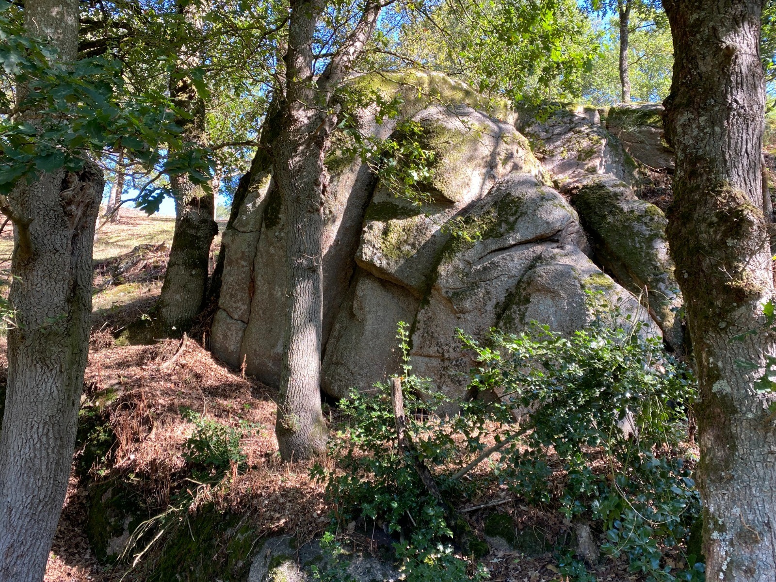 Après le dernier moulin, celui de Rochereau, nous nous éloignons de la Sèvre pour emprunter un chemin de plus d’un kilomètre, ombragé et bordé de gros rochers recouverts de mousse ( photo no 18 ).