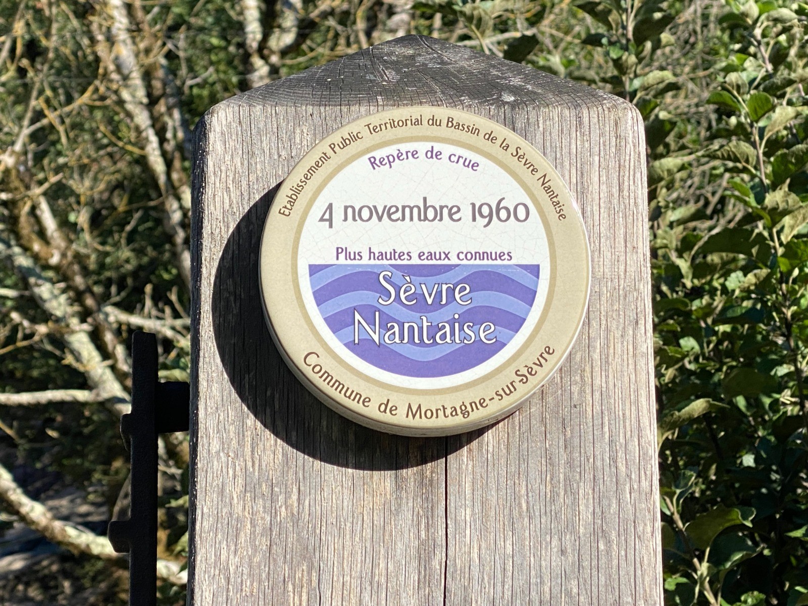 Il y a eu des crues importantes en novembre 1960 et avril 1983 et ce panneau nous indique la hauteur atteinte lors de celles-ci ( à savoir plus de 2 mètres ! ).
