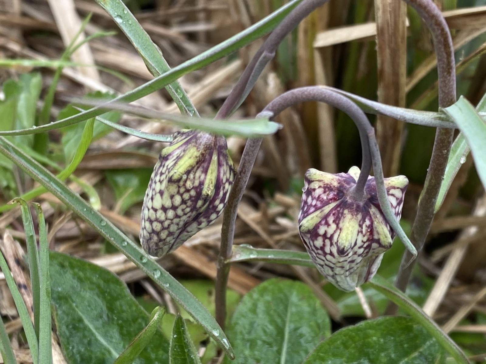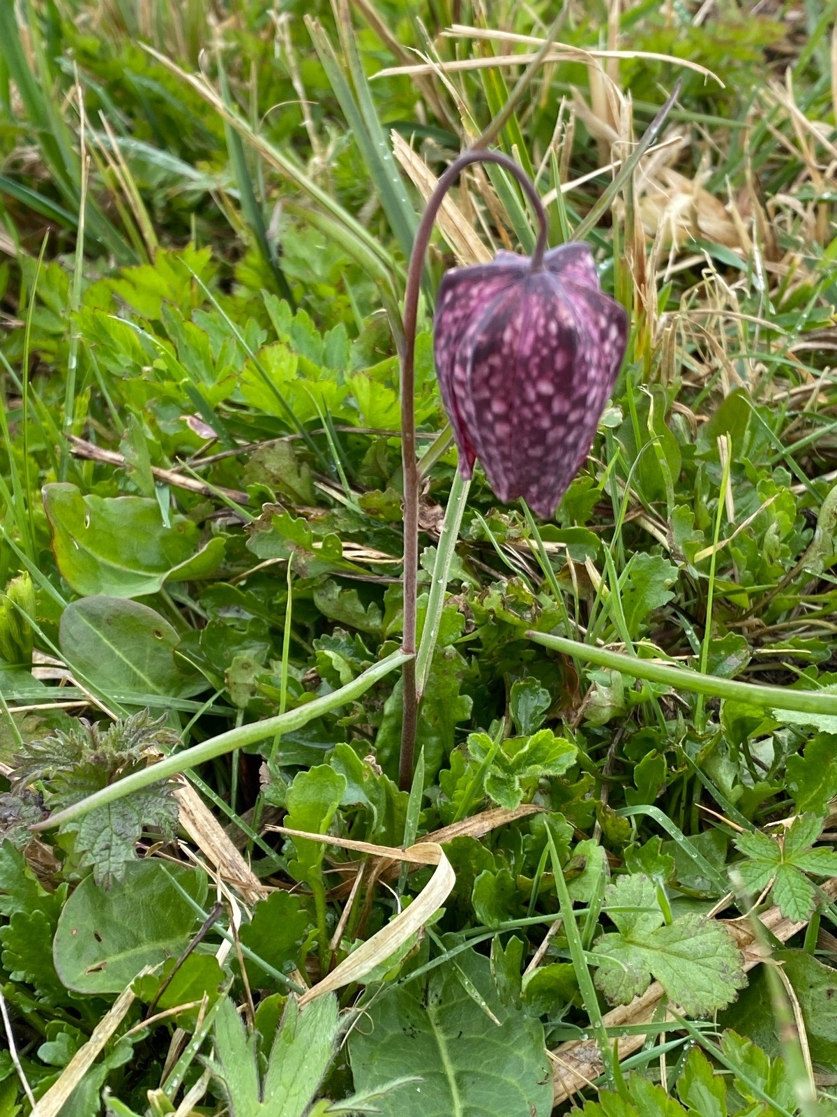 "La fritillaire pintade ou oeuf de vanneaux ( fritillaria meleagris) est facile à reconnaître avec ses gracieuses clochettes et ses corolles pourpres.
