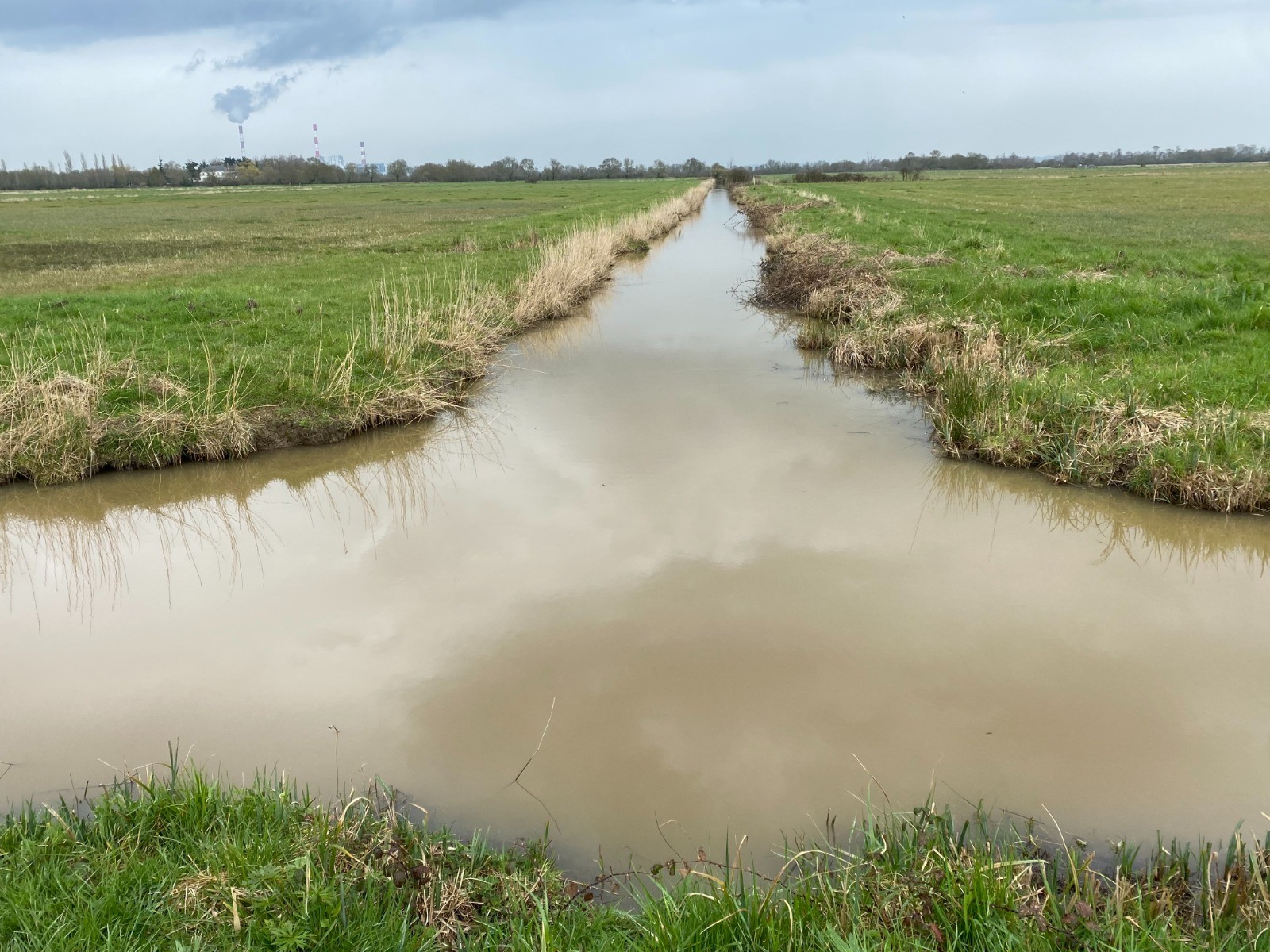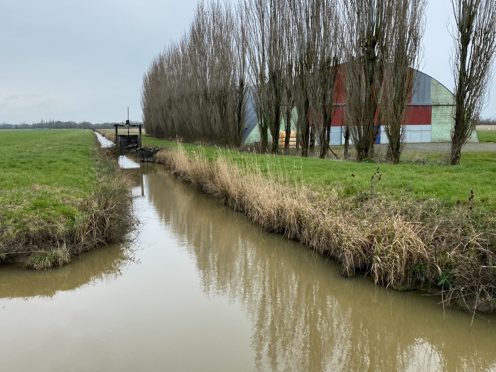 Kilomètre 7, me voici au pied de la base ULM, je donne un coup d'oeil dans le pré bordant le petit canal.