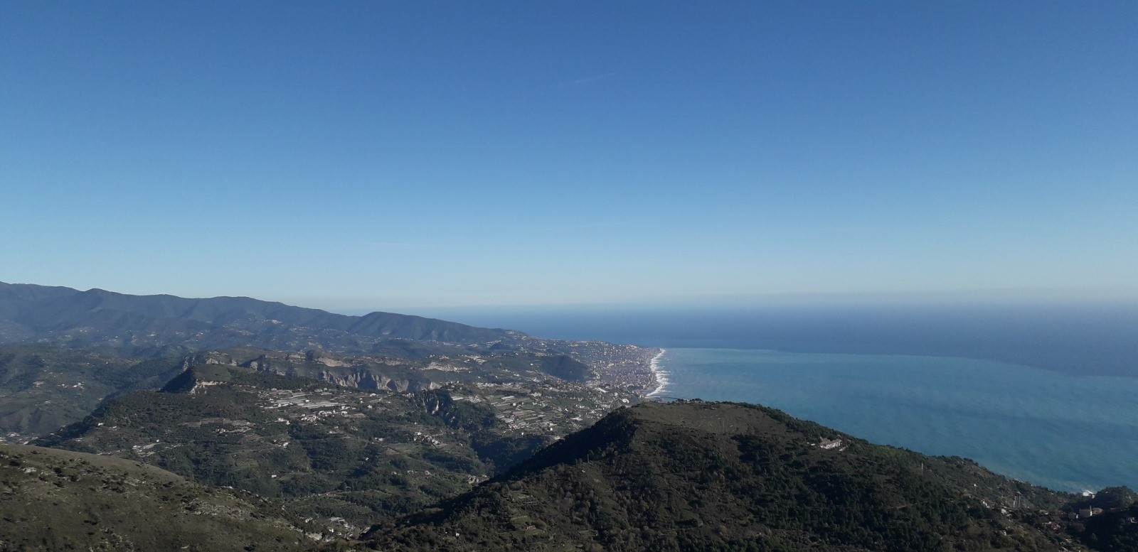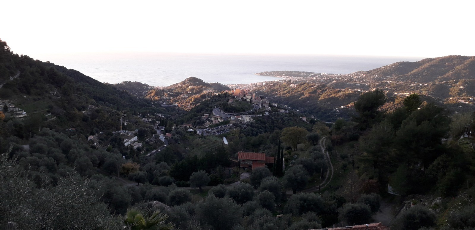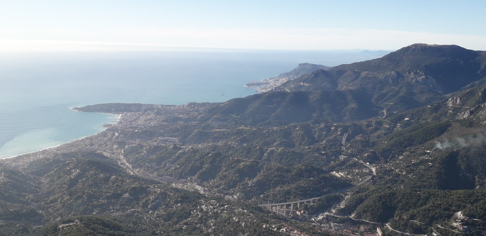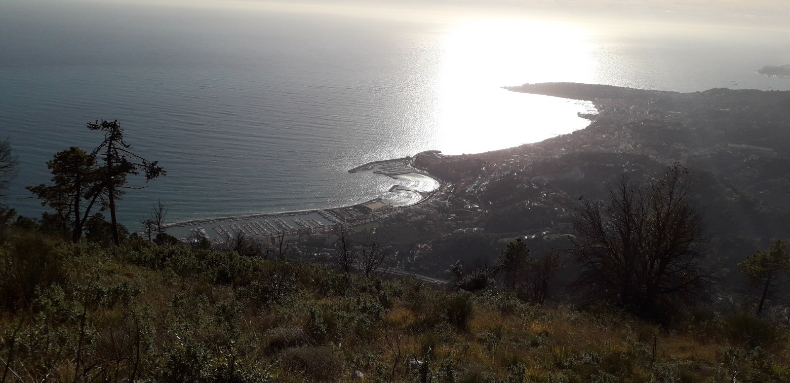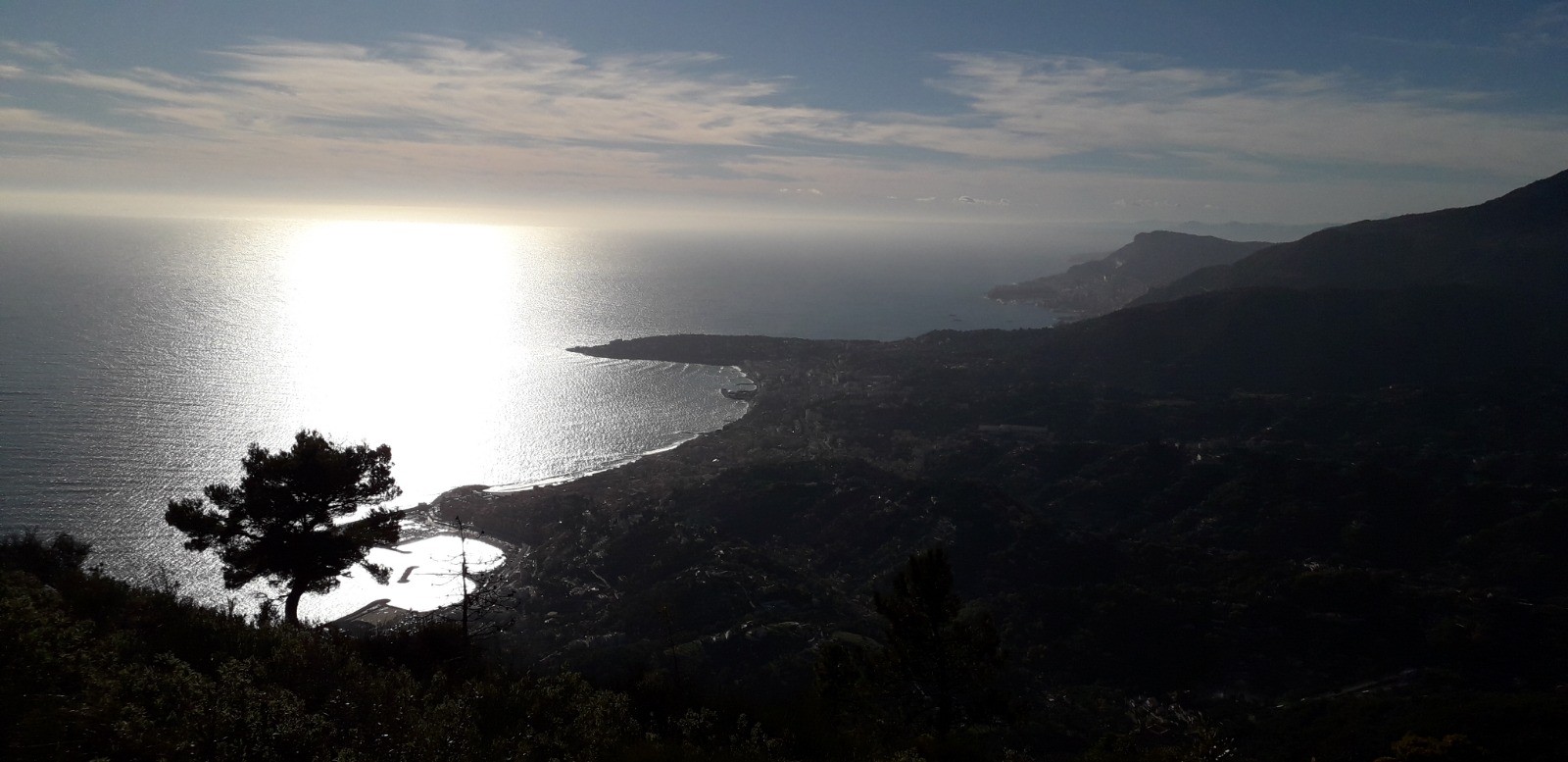 Circuit en boucle au départ du village de Castellar avec un sublime point de vue sur la Riviera depuis le Roc d'Orméa qui surplombe Menton et poursuite parcours jusqu'au sommet franco-italien du Mont Carpano. Magnifiques belvédères sur le littoral.